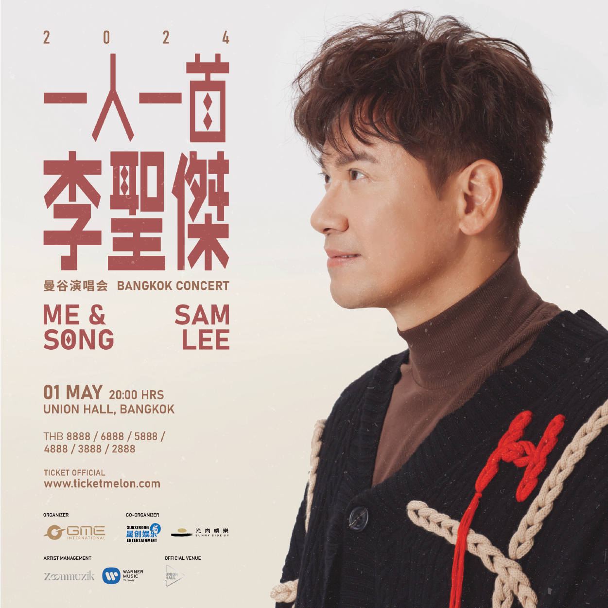 เตรียมพบกับคอนเสิร์ตครั้งยิ่งใหญ่ของเจ้าพ่อเพลงรักจากประเทศไต้หวัน “แซม ลี” กับงาน Me & Song Sam Lee Bangkok Concert 2024 โดยผู้จัด GME International ร่วมกับ SunStrong Entertainment และ Sunny Side Up ที่จะจัดขึ้นในวันพุธที่ 1 พฤษภาคม 2567 ณ ยูเนี่ยน ฮอลล์ ชั้น F6 ศูนย์การค้ายูเนี่ยน มอลล์