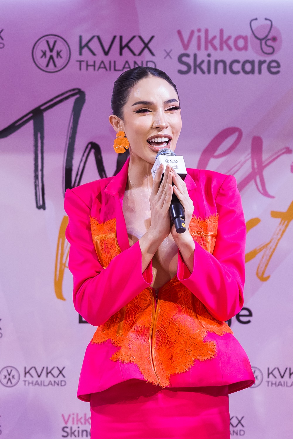โดย “หมอกุ้ง – กรวิกกา พัฒนะปราน” CEO & CO-FOUNDER KVKX THAILAND เผยว่า “ตอนนี้ KVKX THAILAND เดินทางมาครบ 9 ปีแล้ว และเรายังคงทำ Vikkaskincare อย่างต่อเนื่อง แต่เราก็ยังไม่หยุดที่จะพัฒนาและปรับปรุงผลิตภัณฑ์ต่างๆ ของเราให้ดียิ่งขึ้นอยู่สม่ำเสมอ เพื่อให้สินค้าทุกชิ้นยังคงมาตรฐานและมีคุณภาพที่ดีขึ้นเรื่อยๆ ตามสโลแกน “จริงใจ ปลอดภัย ไม่แพง” โดยเฉพาะ Inaclear Cream G+ สินค้าขายดีมาตลอด 9 ปี ครั้งนี้เราก็ได้พัฒนาสูตรใหม่ที่ดียิ่งขึ้นกว่าเดิม ที่ยังคงผลิตและนำเข้าจากประเทศฝรั่งเศส และการได้ “คุณเมย์ พิชญ์นาฏ” มารับหน้าที่ CO-CEO KVKX THAILAND ก็สามารถช่วยให้แบรนด์และผลิตภัณฑ์ของเราเป็นที่รู้จักมากขึ้น สามารถช่วยขยายฐานลูกค้าในวงกว้างมากยิ่งขึ้นไปด้วยค่ะ”
