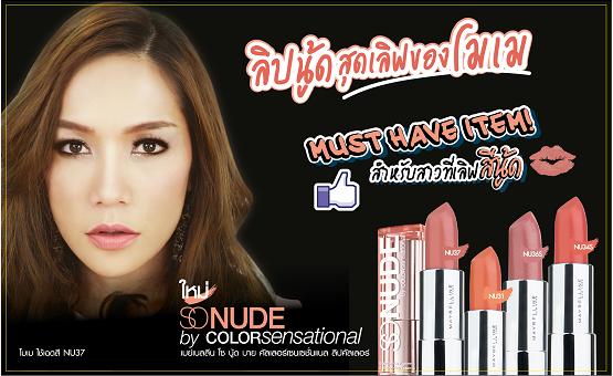 สาวๆแฟชั่นนิสต้าที่เคยเชื่อว่าสีนู้ดคือสีที่ดูจืดชืดและทำให้ดูป่วยไร้ชีวิตชีวาคงต้องเปลี่ยนความคิด!เมื่อเมย์เบลลีนนิวยอร์กแบรนด์เครื่องสำอางอันดับหนึ่งของโลกชวนคุณมาเปลี่ยนนิยามใหม่ของลิปสติกสีนู้ดด้วยเมย์เบลลีนโซนู้ดบายคัลเลอร์เซนเซชั่นแนล(Maybelline So Nude by Color Sensational)การปฏิวัติเทรนด์สีนู้ดบนเรียวปากให้ดูสดใสมีชีวิตชีวากว่าที่เคยให้คุณบอกลาสีนู้ดซีดๆไปได้เลยพร้อมมอบเรียวปากอวบอิ่มเนียนนุ่มชุ่มชื่น ด้วยสารสกัดจากน้ำผึ้งบริสุทธิ์จากเกสรดอกไม้เนรมิตเสน่ห์สุดเซ็กซี่ในแบบฉบับแฟชั่นนิสต้าที่ไม่เคยหลุดเทรนด์ นี่แหละความลงตัวที่ใช่เลย!การันตีความฮอตโดยเมคอัพกูรูชื่อดัง โมเม นภัสสร บุรณศิริที่ยกให้ เมย์เบลลีน โซ นู้ด บาย คัลเลอร์เซนเซชั่นแนล เป็น’ลิปนู้ดสุดเลิฟของโมเม’