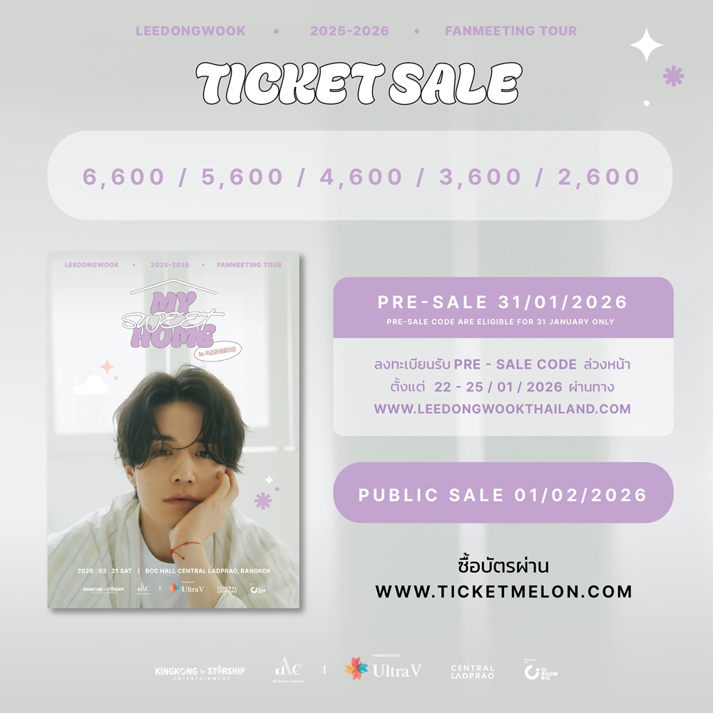 สิ้นสุดการรอคอยของแฟน ๆ ชาวไทย เมื่อพระเอกซูเปอร์สตาร์เกาหลี “อี ดงอุค” (Lee DongWook) เตรียมเดินทางกลับมาพบแฟน ๆ อีกครั้งในรอบกว่า 9 ปี กับงานแฟนมีตติ้งที่หลายคนเฝ้าฝัน ในงาน “UltraV presents LEE DONG WOOK 2025–2026 FANMEETING TOUR [MY SWEET HOME] in Bangkok 2026” โดยผู้จัดมากฝีมือ CI Showbiz ที่พร้อมเปลี่ยนค่ำคืนธรรมดาให้กลายเป็นความทรงจำแสนอบอุ่นที่ยากจะลืมเลือน