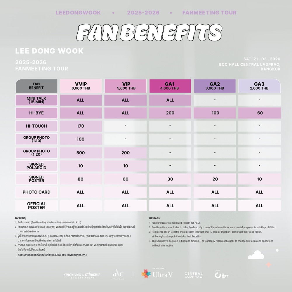 “อี ดงอุค” (Lee DongWook) เจ้าของผลงานระดับตำนานจากซีรีส์ดังอย่าง My Girl, Goblin และ Tale of the Nine Tailed เตรียมขนทั้งรอยยิ้ม เสียงหัวเราะ และโมเมนต์ใกล้ชิด มามอบให้แฟน ๆ ชาวไทยแบบจัดเต็ม ในวันเสาร์ที่ 21 มีนาคม 2569 ณ BCC Hall ชั้น 5 ศูนย์การค้าเซ็นทรัล ลาดพร้าว