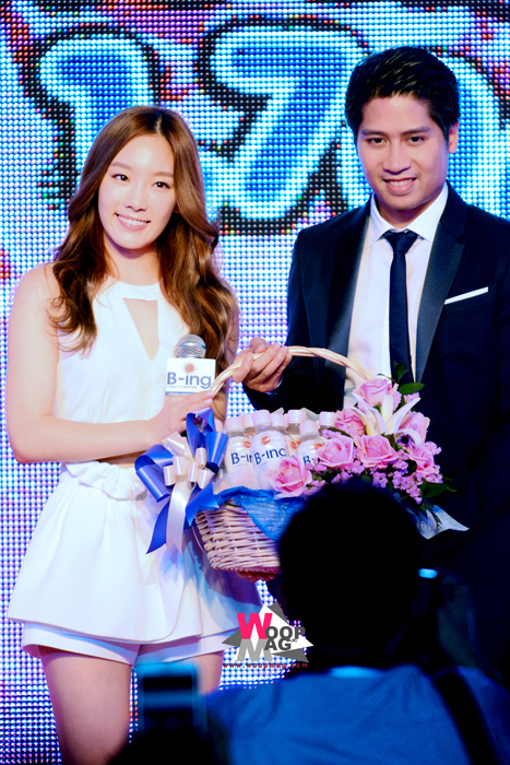 “คุณเต้” ภูริต ภิรมย์ภักดี กล่าวว่า วง เกิร์ล เจเนเรชั่น (Girls’ Generation) เป็นวง “เกิร์ล กรุ๊ป” (Girl Group) ที่มีคนติดตามและชื่นชมไปทั่วโลก ด้วยความสวย และ น่ารัก รวมทั้ง “คิมแทยอน” เป็นศิลปินที่ดูแลตัวเองได้เป็นอย่างดี ตรงกับคอนเซปต์ของผลิตภัณฑ์ของเรา “บี-อิ้ง” คอลลาเจน น่ารัก สไตล์เกาหลี เราจึงเชิญ “คิมแทยอน” มาเป็นพรีเซ็นเตอร์ และ ทาง คิมแทยอน ก็ได้ตอบรับร่วมเป็นพรีเซ็นเตอร์ให้กับเรา พร้อมทั้งเดินทางมาร่วมเปิดตัว และ ถ่ายทำโฆษณาชุดใหม่ที่จะออกอากาศในเดือนกันยายนนี้