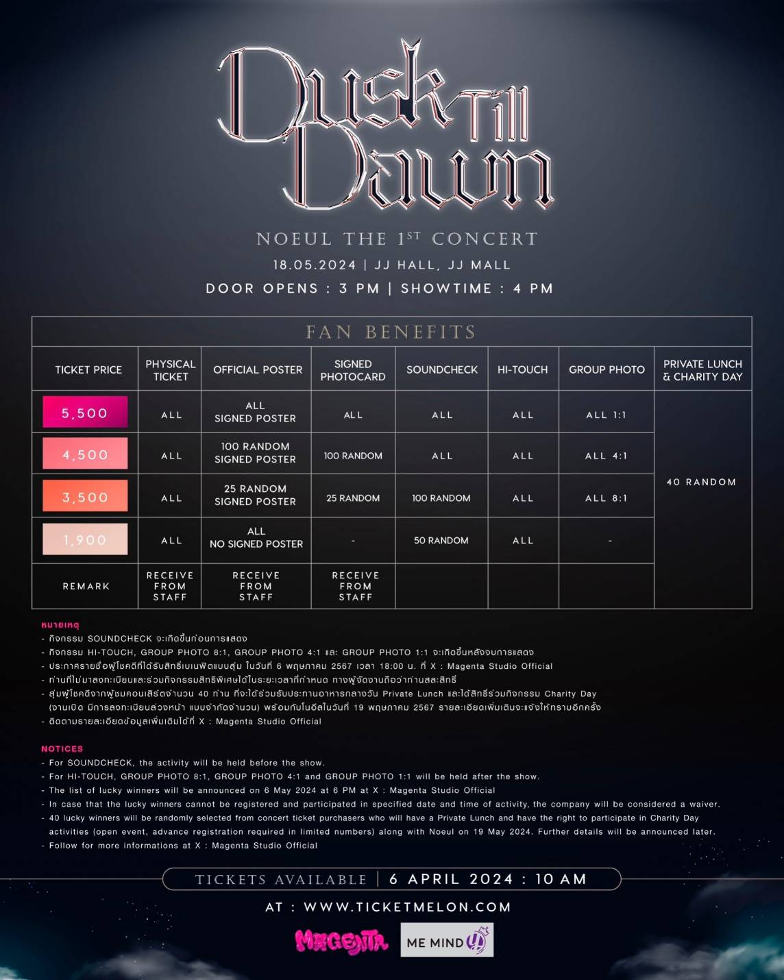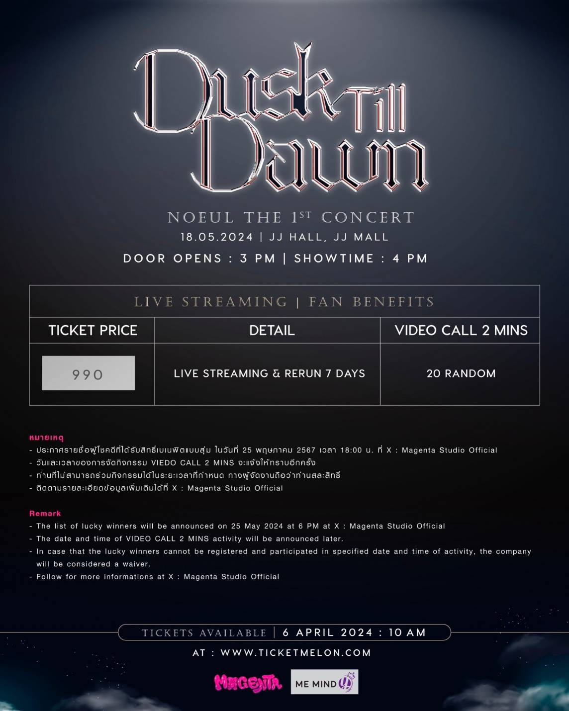 โนอึล เปิดใจว่า “อยากชวนทุกคนมางานนี้ครับ ผมตั้งใจกับงานครั้งนี้มาก บอกได้เลยว่างานนี้จะพิเศษมาก เพราะเป็นทั้งคอนเสิร์ตเดี่ยวครั้งแรกในชีวิตของผม รับรองว่าจัดหนัก จัดเต็ม ทั้งร้อง ทั้งเต้น ทั้งงานแน่นอนครับ และที่สำคัญสุดๆ เลยงานนี้จัดตรงกับวันคล้ายวันเกิดผมเลยครับ พลาดไม่ได้นะครับ”