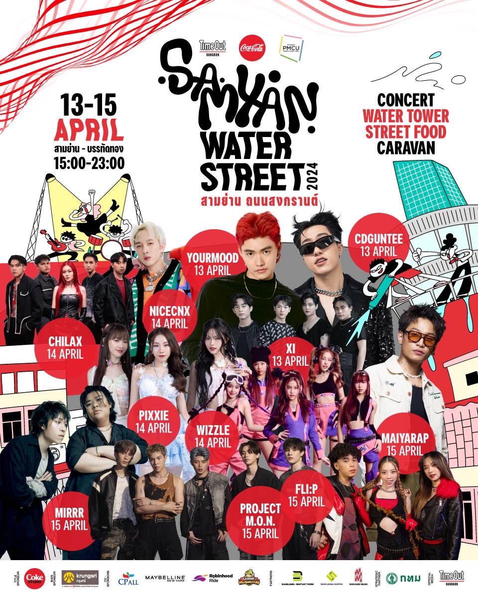 สงกรานต์นี้ต้อง ‘สามย่านถนนสงกรานต์’ กับ Coca-Cola, PMCU, Time Out present ‘Samyan Water Street 2024’ 13-15 เมษายน 2567 เวลา 12:00-23:00 น. เข้าฟรี เติมน้ำฟรี คอนเสิร์ตฟรีตลอดทั้งงาน งานนี้เป็นการจัดงานร่วมกันระหว่าง สำนักงานจัดการทรัพย์สิน จุฬาลงกรณ์มหาวิทยาลัย โค้ก กรุงเทพมหานคร และ Time Out Bangkok