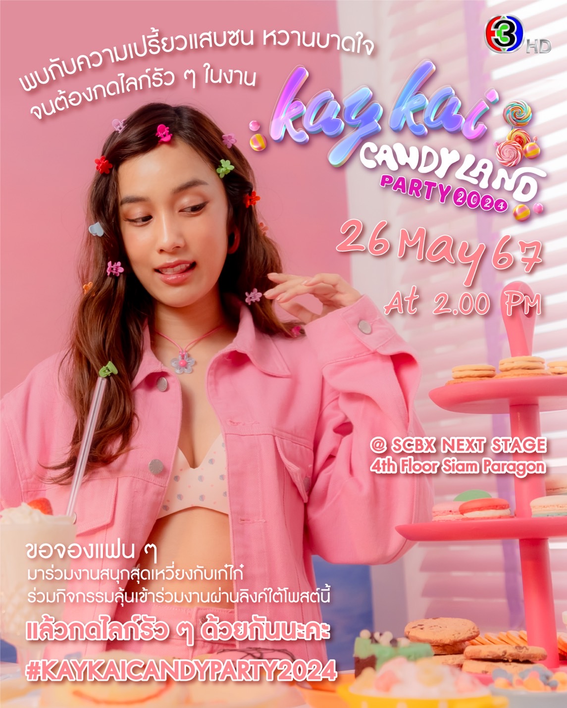 งานนี้ทุกคนสามารถมาร่วมงานสนุกสุดเหวี่ยงกับเก๋ไก๋ได้กับกติกาง่าย ๆ เพียงสมัครเข้าร่วมงานได้ทางลิงก์นี้  https://bit.ly/3UCnrRi แล้วกรอกข้อมูลให้ครบถ้วน แค่เท่านี้ก็รอฟังข่าวดีการประกาศรายชื่อทางเฟซบุ๊ก Ch3Thailand ในวันพุธที่ 22 พฤษภาคม 2567 เวลา 12.00 น. เป็นต้นไป แล้วพบกันได้ที่ “KAYKAI CANDY PARTY 2024” ซึ่งจะจัดขึ้นในวันอาทิตย์ที่ 26 พฤษภาคม 2567 เวลา 14.00 น. ณ SCBX NEXT STAGE ชั้น 4 ศูนย์การค้า สยาม พารากอน บอกเลยว่างานนี้ห้ามพลาด!! ติดตามรายละเอียดได้ที่ www.ch3plus.com หรือ แอฟพิเคชัน 3Plus
