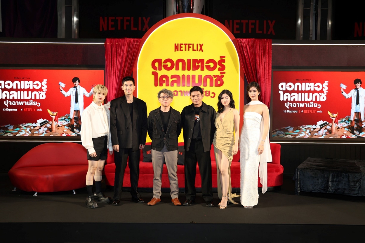 Netflix เปิดโลกแห่งความเสียวสะท้าน สร้างพื้นที่พูดคุยเรื่องเพศแบบฉบับไม่ลับ ในงานแถลงข่าวซีรีส์สุดต้านทานเรื่องล่าสุด ดอกเตอร์ไคลแมกซ์ ปุจฉาพาเสียว นำทีมโดย เต๋อ-ฉันทวิชช์ ธนะเสวี (รับบท หมอนัท และ ดร. ไคลแมกซ์) ก้อย-อรัชพร โภคินภากร (รับบท ลินดา) แพรว-เฌอมาวีร์ สุวรรณภาณุโชค (รับบท ตุ๊กตา) และ ต้นหน ตันติเวชกุล (รับบท เพิ่มพล) พร้อมด้วยผู้กำกับมากฝีมือทั้งสองท่านอย่าง คงเดช จาตุรันต์รัศมี และ ปกป้อง-ไพรัช คุ้มวัน โดย Netflix ได้เนรมิตให้ภายนอกงานดูเผินๆ แล้วเป็นเพียง “ณัฐวุฒิคลินิก” คลินิกธรรมดาๆ ของหมอนัท แต่เมื่อเปิดประตูเข้าไปภายในกลับพบกับโลกสุดสยิวของ ดร.ไคลแมกซ์ ตั้งแต่การจำลองโต๊ะทำงานของ ดร.ไคลแมกซ์ที่เต็มไปด้วยเรื่องราวโลดโผนของคนฮอร์โมนพลุกพล่าน การเปิดโซน Letter Wall ให้ผู้ร่วมงานสามารถเขียนจดหมายปรึกษาปัญหาทางเพศ และแชร์เรื่องราวในที่ลับได้อย่างอิสระ รวมไปถึงเมนูอาหารสุดพิเศษที่คัดสรรมาเพื่อให้สมรภูมิรักรับคะแนนเต็มสิบ สร้างประสบการณ์สุดจึ้งที่เรื่องเซ็กซ์จะถูกพูดถึงได้อย่างสร้างสรรค์ในโลกแห่งนี้