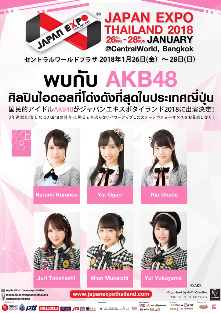 ดูจะเป็นสิ่งที่ทุกคนรอคอยและลุ้นกันตัวโก่งว่า งาน Japan Expo Thailand2018 ครั้งที่ 4 บริษัท จี-ยู ครีเอทีฟ (G-Yu Creative) ผู้จัดงาน All Japan Event ระดับเอเชีย!!! โดย คุณยุพเรศ เอกธุระประคัลภ์ประธานกรรมการบริหาร พร้อมด้วยผู้สนับสนุนหลักอย่างเป็นทางการจาก บริษัท โออิชิ กรุ๊ป จำกัด (มหาชน) ,บริษัท ปตท.จำกัด (มหาชน), บริษัท ตรีเพชรอีซูซุเซลส์ จำกัด, บริษัท การบินไทย จำกัด (มหาชน), บริษัท อิออน ธนสินทรัพย์ (ไทยแลนด์) จำกัด (มหาชน), JTB Thailand และโรงเรียนสอนภาษาญี่ปุ่นไมนิจิ จะมีนำศิลปินไอดอลสุดฮอตที่โด่งดังที่สุดในญี่ปุ่น AKB48 กลับมาเยือนไทยอีกหรือไม่!!!