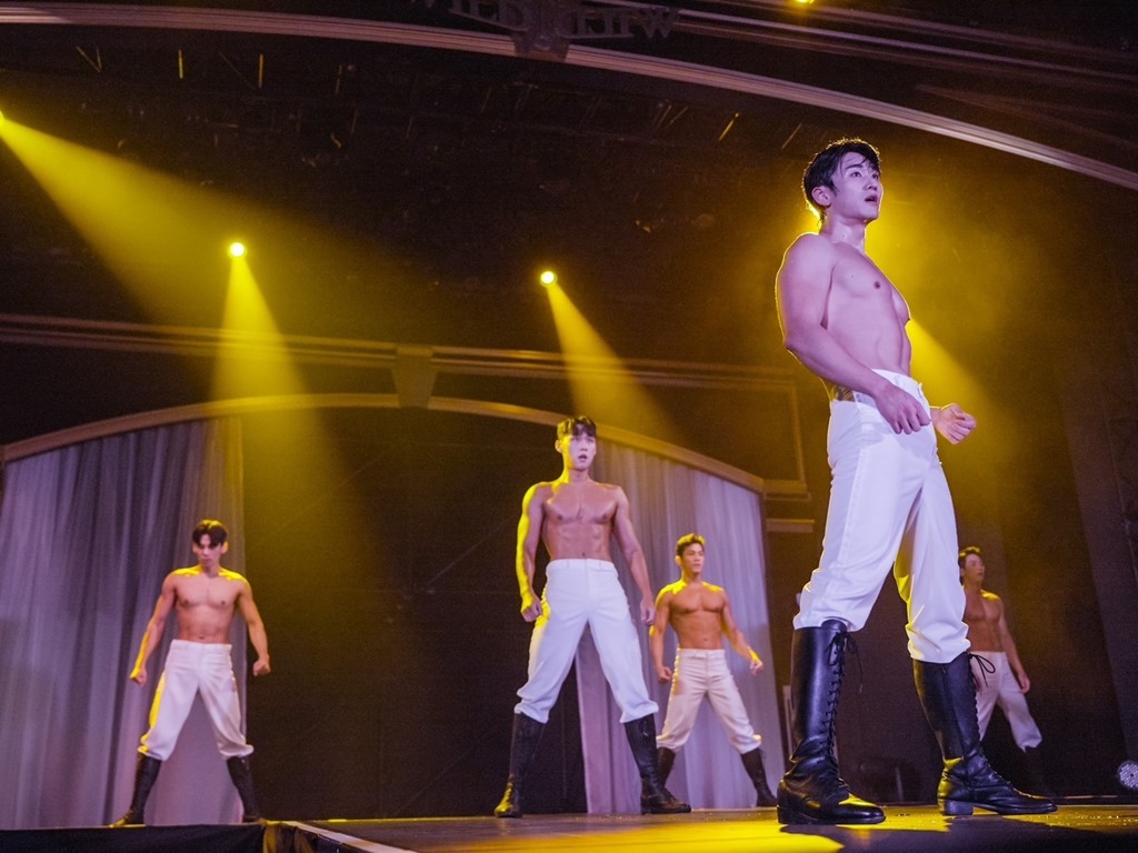การแสดงที่เต็มไปด้วยความ เร่าร้อน และพลังอันเย้ายวน ผสมผสานศิลปะการเต้น ทั้งการเต้นสมัยใหม่ การใช้กลองมาร่วมแสดง การแสดงกลางอากาศ และการแสดง pole dance สุดเซ็กซี่ ด้วยชุดหลากหลาย ตั้งแต่ชุดสูท ชุดกะลาสี ไปจนถึงชุดอาบน้ำกึ่งเปลือย ที่จะทำให้คุณแทบลืมหายใจ พิเศษสุด ไม่เพียงแค่ชมการแสดงเท่านั้น คุณยังมีโอกาสใกล้ชิดกับเหล่านักแสดที่จะลงมาเต้นใกล้ ๆ คุณ จนสามารถสัมผัสได้ถึงกล้ามเนื้อของพวกเขา