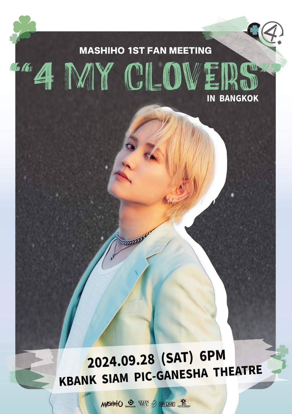ในงาน MASHIHO PRESENTS , 1st FAN MEETING 4 MY CLOVERS IN BANGKOK ” มาชิโฮะ” จะไม่ทำให้ ไทยโคลเวอร์ ผิดหวังแน่นอน แล้วพบกันในวันเสาร์ที่ 28 กันยายน 2567 ณ โรงละครเคแบงก์สยามพิฆเนศ