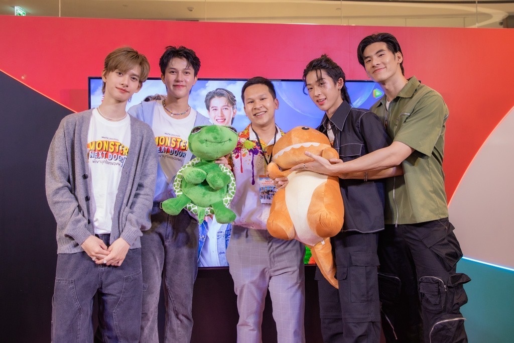 ก็ขยันแกล้ง น้องริวไม่หยุดตลอดงาน จน น้องริว ต้องยกป้ายไฟขอฟ้องแฟนคลับว่าโดนแกล้ง เป็นการเอาคืนพี่ชายได้น่าตีสุดๆ ส่วนคู่นี้ก็ไม่เบา “บิ๊ก-ปาร์ค” จากซีรีส์วายดีย์ต่อใจ “ Monster Next Door” ขยันเติมความหวาน ได้เห็นช็อตเด็ด “พี่บิ๊ก” คอยดูแลเทคแคร์ฟิล “น้องปาร์ค” แบบไม่ห่าง ส่วนอีกคู่ “โอเล่-เขตต์” จากซีรีส์ Monster Next Door คงคอนเซปสายอารมณ์ดี คู่นี้ก็สร้างเสียงฮาให้กับแฟนๆ และ KOLs อย่างมาก ตลอดช่วงเล่นเกมปิดหูใบ้คำ ทำเอาแฟนๆลุ้นจนนั่งไม่ติดเก้าอี้ ส่วนทีมสุดท้ายจากซีรีส์วายกระแสดีรักร้ายนายเสพติด อย่าง “ออกัส-แม็ค-นิวเยียร์-เจ๋อ” กลมกล่อมลงตัวเวอร์ เรียกเสียงกรี๊ดจากแฟนๆและเหล่าครีเอเตอร์ได้ตลอดงาน