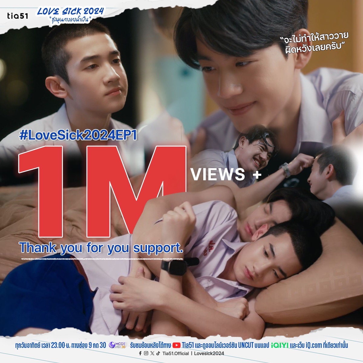 ล่าสุดทำเอา 2 นักแสดงนำ “แอลม่อน ภูมิสุวรรณ” และ “โปรเกรส ภาสวิชญ์” เป็นปลื้มแบบสุดๆ เมื่อยอดวิวรวม EP1 ในทางช่อง Youtube: Tia 51 แตะ 1 ล้านเป็นที่เรียบร้อย แถมแฟนๆยังคอมเม้นท์ชื่นชมในการแสดงของทั้งคู่กันอย่างมากมาย