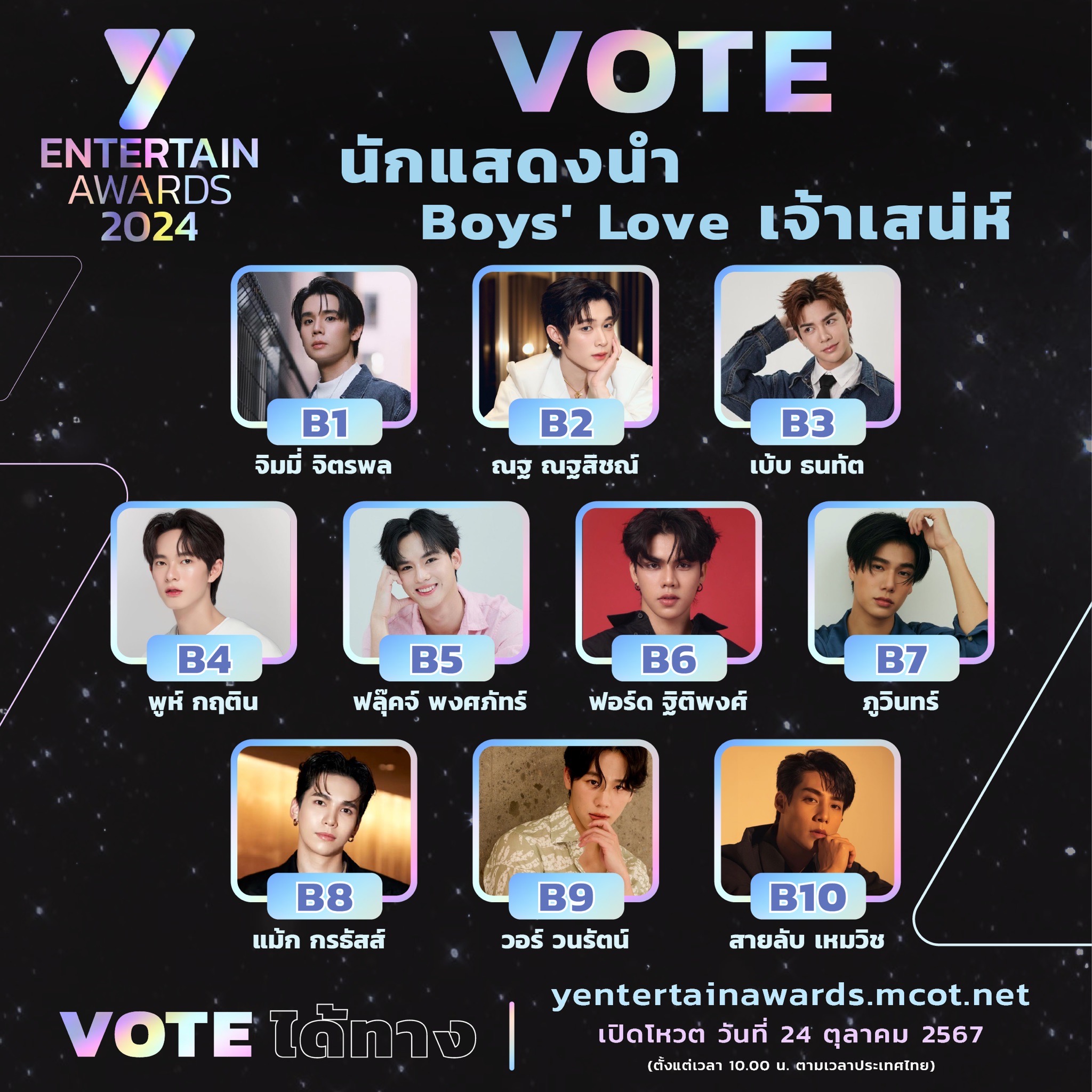 (นักแสดงนำ Boys’ Love เจ้าเสน่ห์) B1 – จิมมี่ จิตรพล (Jimmy Jitaraphol), B2 – ณฐ ณฐสิชณ์ (Nat Natasit), B3 – เบ้บ ธนทัต (Babe Tanatat), B4 – พูห์ กฤติน (Pooh Krittin), B5 – ฟลุ๊คจ์ พงศภัทร์ (Fluke Pongsapat), B6 – ฟอร์ด ฐิติพงศ์ (Fort Thitipong), B7 – ภูวินทร์ (Phuwin), B8 – แม้ก กรธัสส์ (Max Kornthas), B9 – วอร์ วนรัตน์ (War Wanarat), B10 – สายลับ เหมวิช (Sailub Hemmawich), รางวัล Princess of Girls’ Love