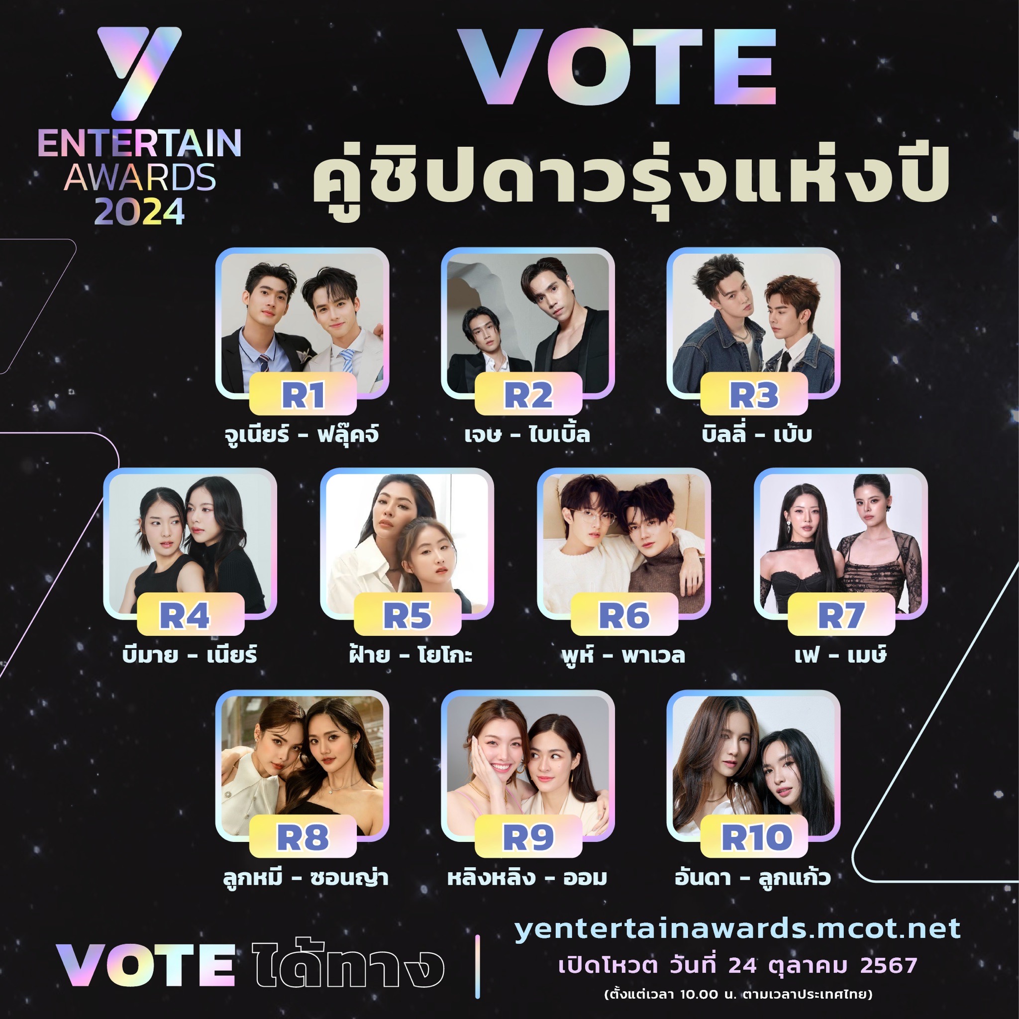 (คู่ชิปดาวรุ่งแห่งปี) R1 – จูเนียร์-ฟลุ๊คจ์ (Junior-Fluke), R2 – เจษ-ไบเบิ้ล (Jes-Bible), R3 – บิลลี่-เบ้บ (Billy-Babe), R4 – บีมาย-เนียร์ (B Mine-Near), R5 – ฝ้าย-โยโกะ (Faye-Yoko), R6 – พูห์-พาเวล (Pooh-Pavel), R7 – เฟ-เมษ์ (Fay-May), R8 – ลูกหมี-ซอนญ่า (Lookmhee-Sonya), R9 – หลิงหลิง-ออม (Lingling-Orm), R10 – อันดา-ลูกแก้ว (Anda-Lookkaew) รางวัล Most Popular Y Novel