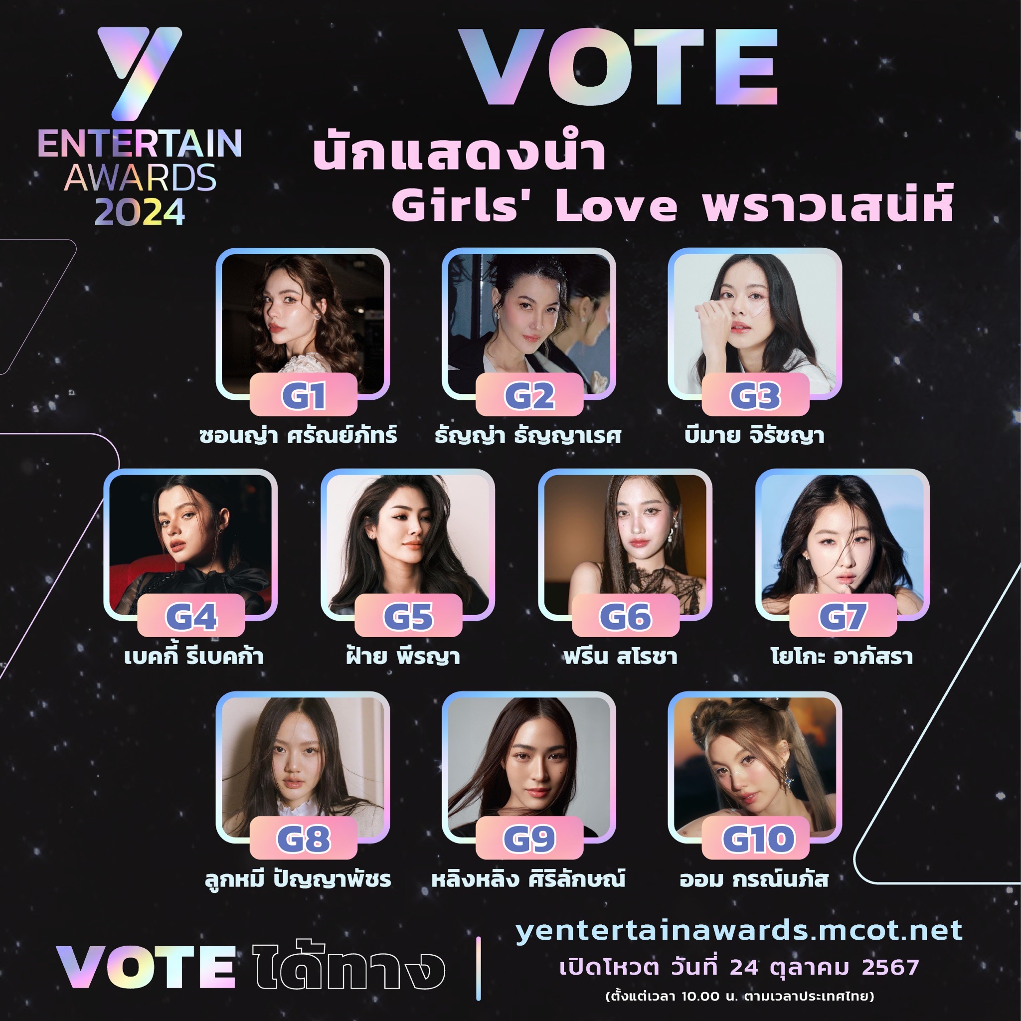 (นักแสดงนำ Girls’ Love พราวเสน่ห์), G1 – ซอนญ่า ศรัณย์ภัทร์ (Sonya Saranphat), G2 – ธัญญ่า ธัญญาเรศ (Tanya Rae), G3 – บีมาย จิรัชญา (B Mine Jiratchaya), G4 – เบคกี้ รีเบคก้า (Becky Rebecca), G5 – ฝ้าย พีรญา (Faye Peraya), G6 – ฟรีน สโรชา (Freen Sarocha), G7 – โยโกะ อาภัสรา (Yoko Apasra), G8 – ลูกหมี ปัญญาพัชร (Lookmhee Punyapat), G9 – หลิงหลิง ศิริลักษณ์ (Lingling Sirilak), G10 – ออม กรณ์นภัส (Orm Kornnaphat) รางวัล Rising Star Couple of the Year