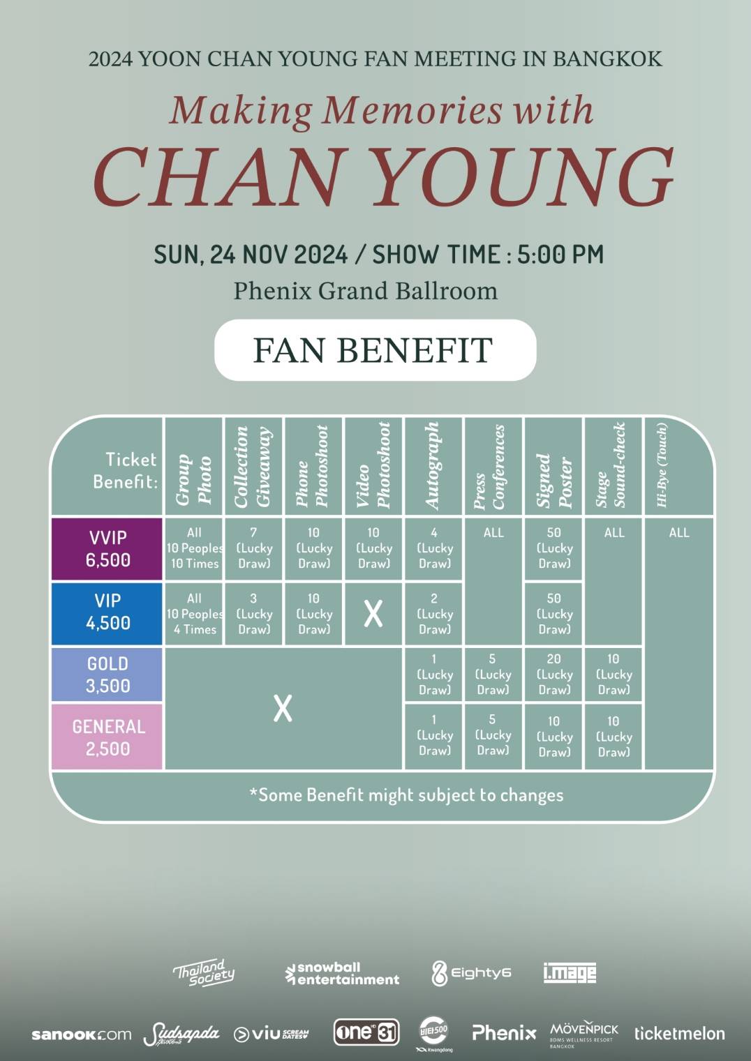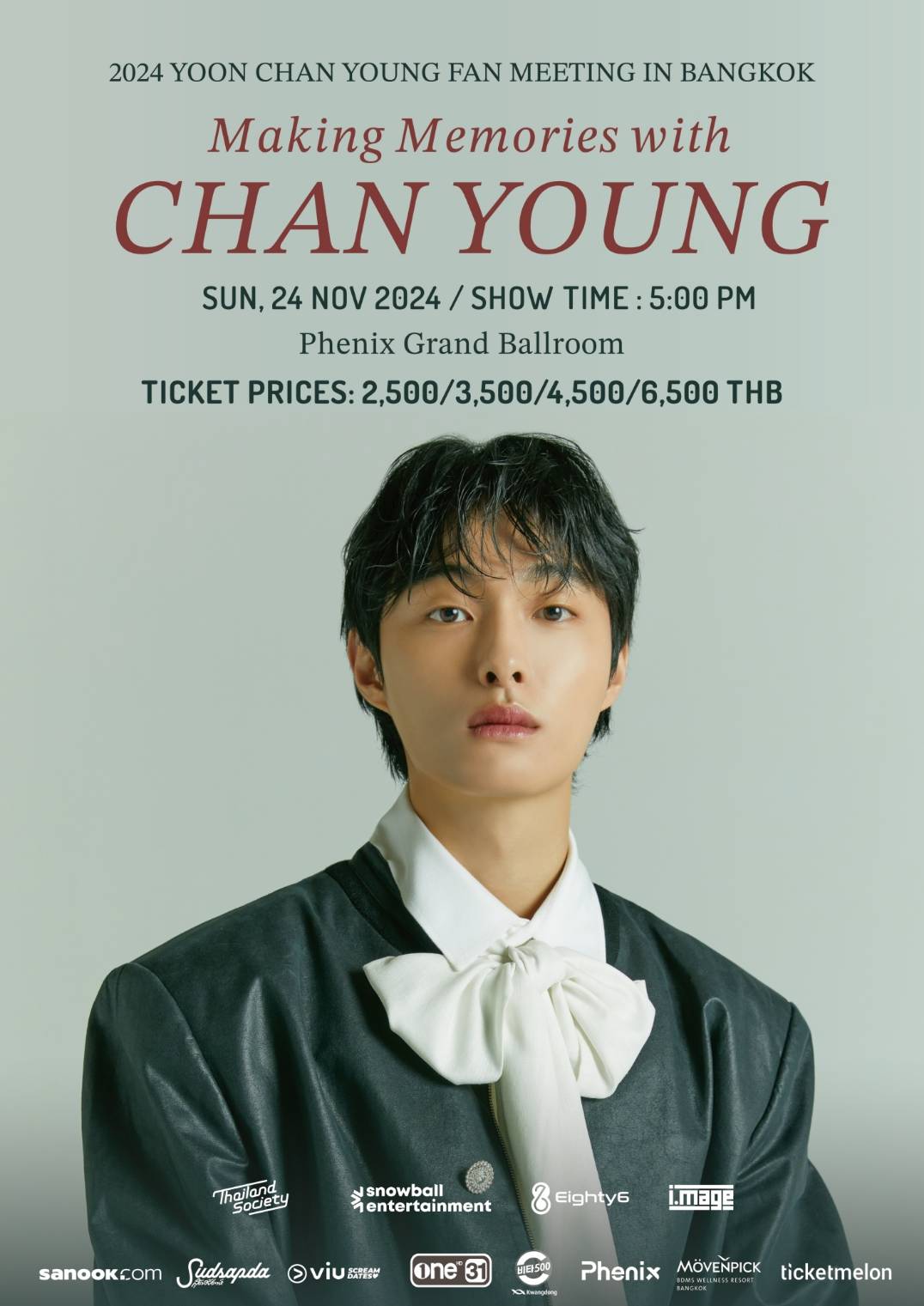 เตรียมนับถอยหลังสู่แฟนมีตติ้งครั้งแรกในไทยของ ยุนชานยอง กับงาน 2024 YOON CHAN YOUNG FANMEETING IN THAILAND Making Memories with CHAN YOUNG ในวันอาทิตย์ที่ 24 พฤศจิกายน ณ Phenix Grand Ballroom บัตรราคา 6,500 / 4,500 / 3,500 / 2,500 บาท จำหน่ายบัตรวันที่ 1 พฤศจิกายน 2024 ผ่านระบบ www.Ticketmelon งานนี้ชานยองมอบสิทธิประโยชน์สุดฟิน ให้แฟนคลับแบบฉ่ำๆ กันไปเลย …ใครที่เคยหลงรักเขาผ่านหน้าจอ วันนี้ไม่ต้องรออีกต่อไป