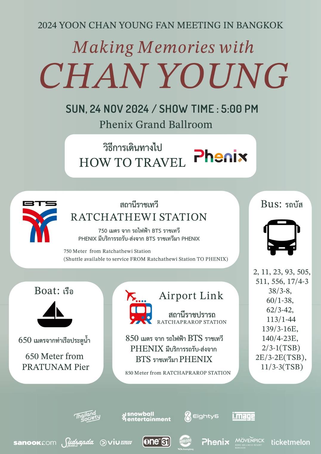 ทีมงานผู้จัด Thailand Society , 8Eight6 , i.mage , Vita500 และกลุ่มพันธมิตรไทย-เกาหลี ผนึกกำลังจัดกิจกรรมงานนี้ เพื่อสร้างแลนด์มาร์คความทรงจำกับทุกคน พร้อมเปิดตัวตนหลากหลายมุมที่หลายคนไม่เคยสัมผัส นอกเหนือจากบทบาทหนุ่มเท่สุดกร้าวใจที่ทำให้ใครๆ ก็ตกหลุมรักเขากันไปแล้ว นอกจากประสบการณ์มากกว่า 10 ปีในวงการบันเทิง ที่มีผลงานมากมาย ..ยุนชานยอง เป็นอีกหนึ่งนักแสดงที่มีความสามารถ งานแฟนมีตติ้งครั้งแรกในเมืองไทย ครั้งนี้ ชานยอง ตื่นเต้นมาก และได้เตรียมตัว อย่างเต็มที่จะมาร่วมสนุก สร้างรอยยิ้ม ความประทับใจ ไปด้วยกัน