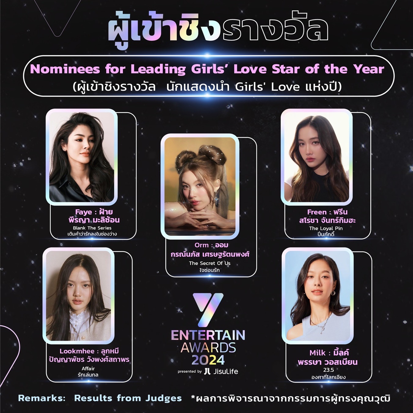 รางวัล Leading Girls’ Love Star of the Year (นักแสดงนำ Girls’ Love แห่งปี) ได้แก่ ฝ้าย-พีรญา มะลิซ้อน Blank The Series เติมคำว่ารักลงในช่องว่าง, ออม-กรณ์นภัส เศรษฐรัตนพงศ์ The Secret Of Us ใจซ่อนรัก, ฟรีน-สโรชา จันทร์กิมฮะ The Loyal Pin ปิ่นภักดิ์, ลูกหมี-ปัญญาพัชร วังพงศ์สถาพร Affair รักเล่นกล, มิ้ลค์-พรรษา วอสเบียน 23.5 องศาที่โลกเอียง