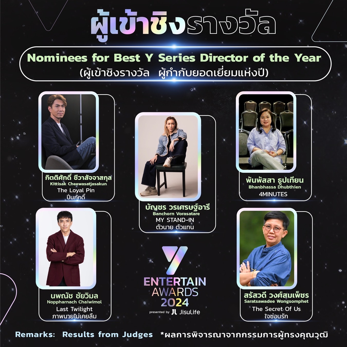 รางวัล Best Y Series Director of the Year (ผู้กำกับยอดเยี่ยมแห่งปี) ได้แก่ กิตติศักดิ์ ชีวาสัจจาสกุล The Loyal Pin ปิ่นภักดิ์, บัญชร วรเศรษฐ์อารี MY STAND-IN ตัวนาย ตัวแทน, พันพัสสา ธูปเทียน 4MINUTES, นพณัช ชัยวิมล Last Twilight ภาพนายไม่เคยลืม, สรัสวดี วงศ์สมเพ็ชร The Secret Of Us ใจซ่อนรัก