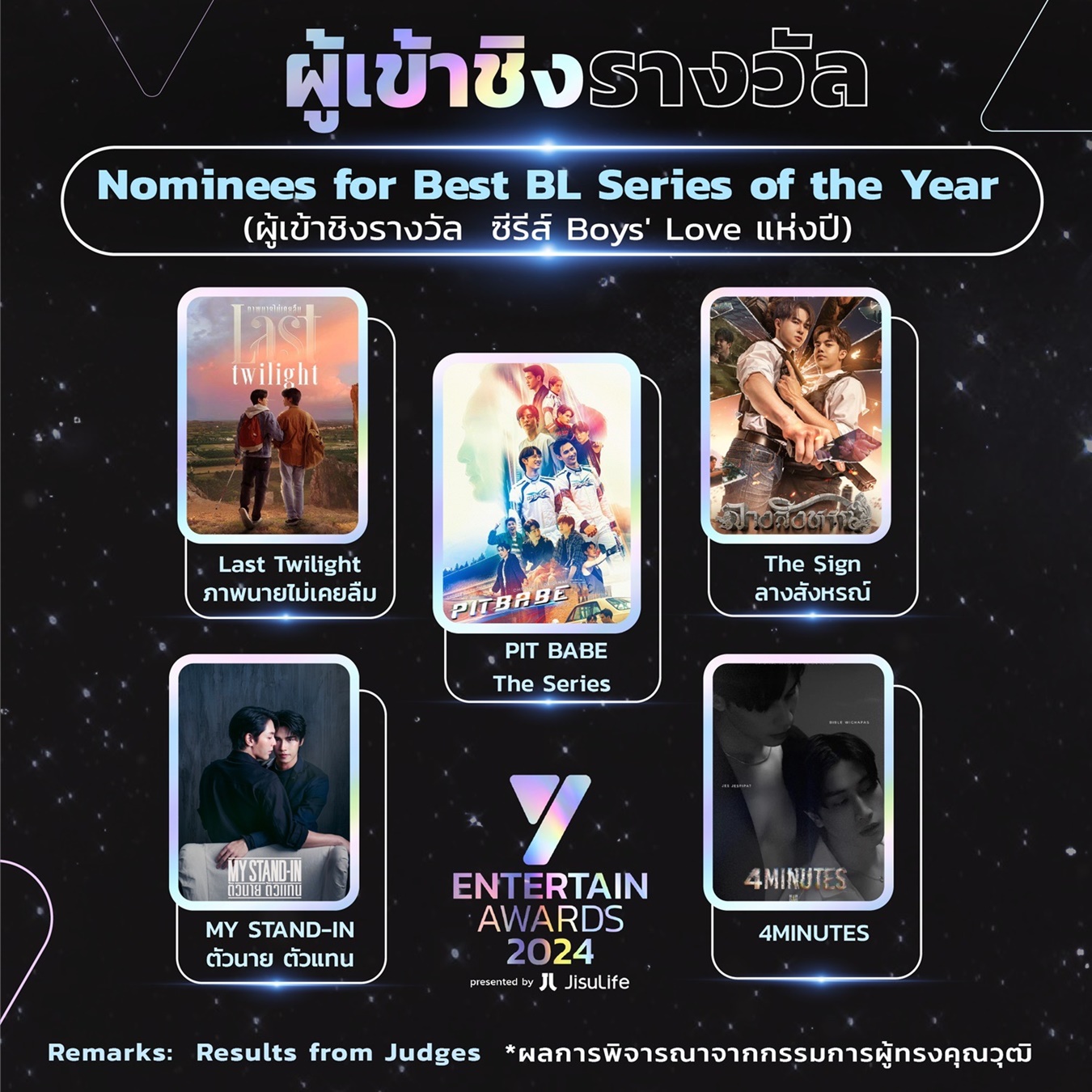 รางวัล Best BL Series of the Year (ซีรีส์ Boys’ Love แห่งปี) ได้แก่ Last Twilight ภาพนายไม่เคยลืม, PIT BABE The Series, The Sign ลางสังหรณ์, MY STAND-IN ตัวนาย ตัวแทน, 4MINUTES