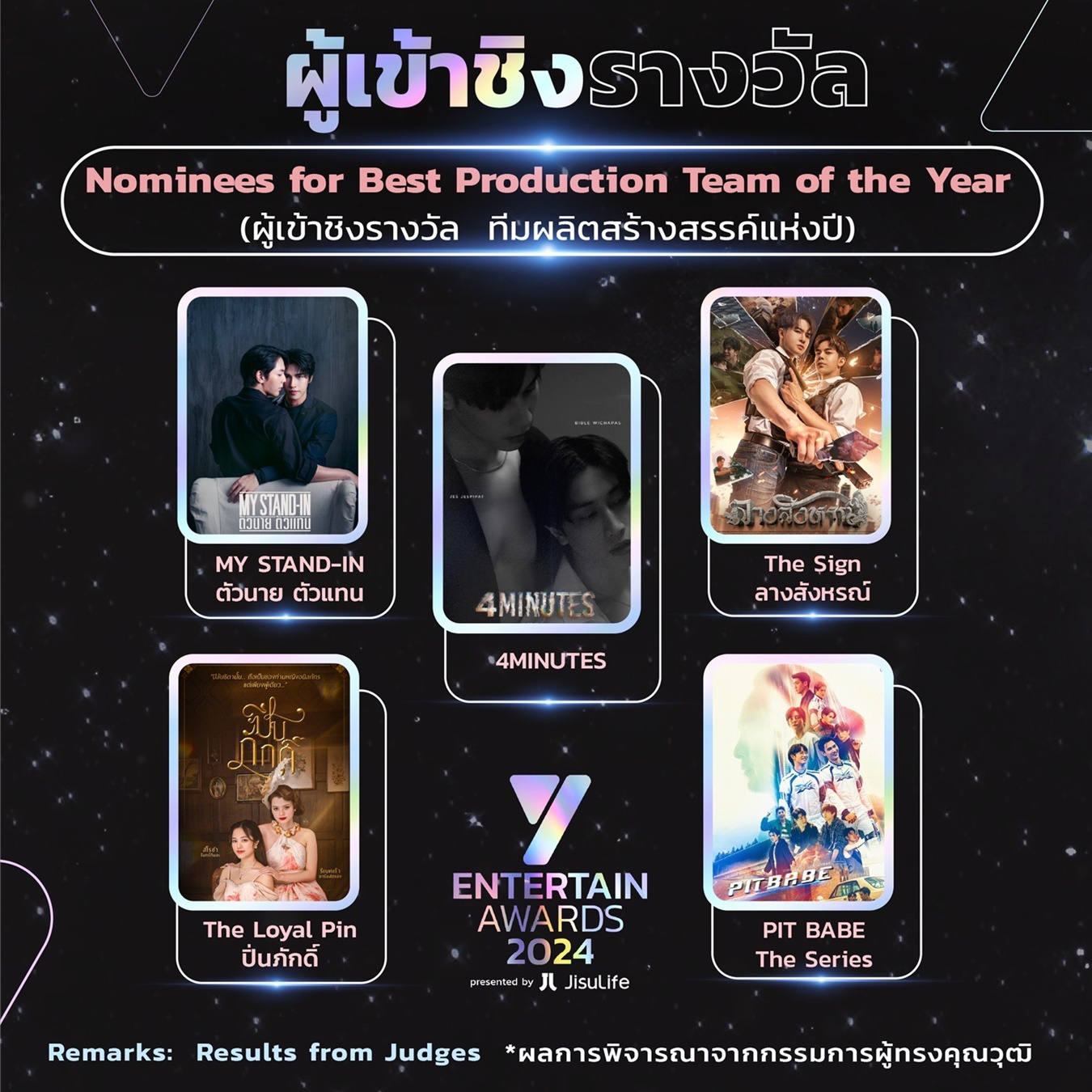 รางวัลBest Production Team of the Year (ทีมผลิตสร้างสรรค์แห่งปี) ได้แก่ MY STAND-IN ตัวนาย ตัวแทน, 4MINUTES, The Sign ลางสังหรณ์, The Loyal Pin ปิ่นภักดิ์, PIT BABE The Series
