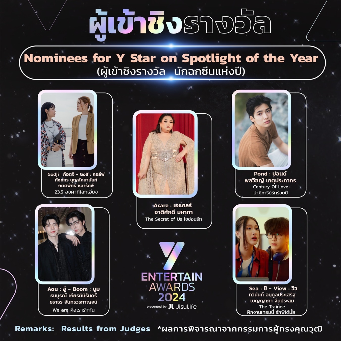 รางวัล Y Star on Spotlight of the Year (นักฉกซีนแห่งปี) ได้แก่ เอแคลร์-ชาติศักดิ์ มหาทา จากซีรีส์เรื่อง The Secret of Us ใจซ่อนรัก, ก๊อตจิ-ทัชชกร บุญลัภยานันท์ และ กอล์ฟ-กิตติพัทธ์ ชลารักษ์ จากซีรีส์ เรื่อง 23.5 องศาที่โลกเอียง, ปอนด์-พลวิชญ์ เกตุประภากร จากซีรีส์เรื่อง Century Of Love ปาฏิหาริย์รักร้อยปี, อู๋-ธนบูรณ์ เกียรตินิรันดร์ และ บูม-ธราธร จันทรวรกาญจน์ จากซีรีส์เรื่อง We are คือเรารักกัน, ซี- ทวินันท์ อนุกูลประเสริฐ และ วิว-เบญญาภา จีนประสม จากซีรีส์เรื่อง The Trainee ฝึกงานเทอมนี้ รักพี่ได้มั้ย
