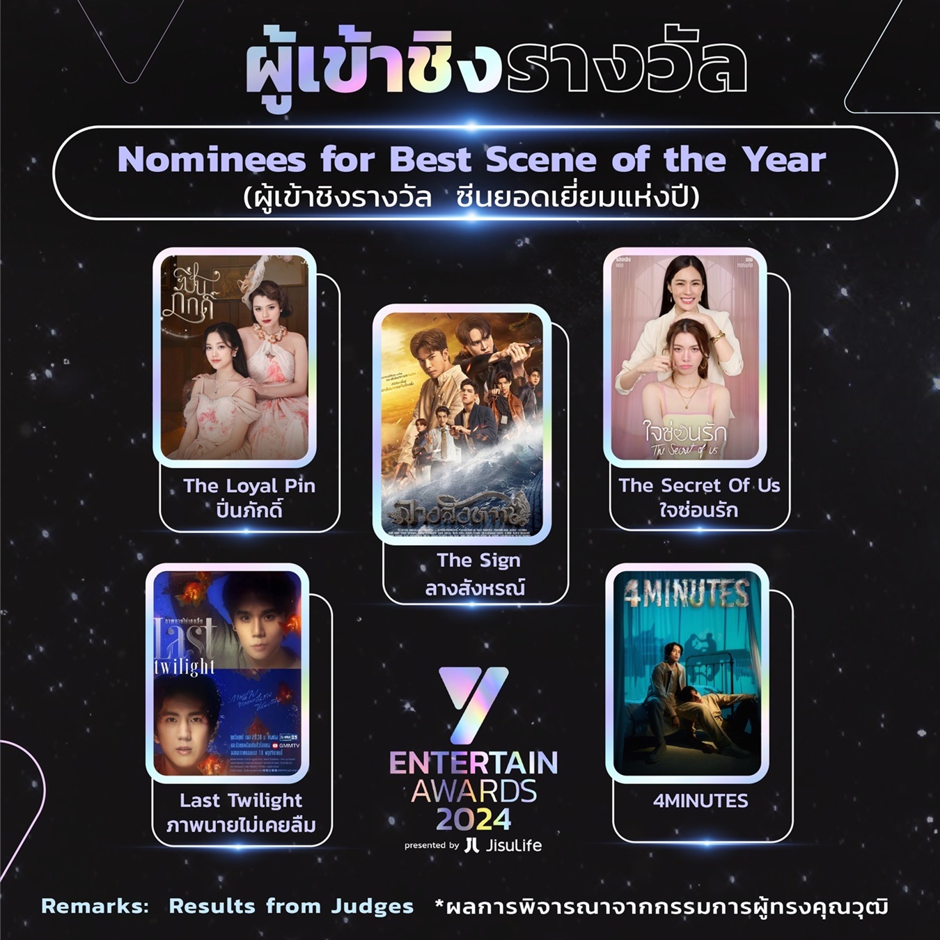 รางวัล Best Scene of the Year (ซีนยอดเยี่ยมแห่งปี) ได้แก่ The Loyal Pin ปิ่นภักดิ์, The Sign ลางสังหรณ์, The Secret Of Us ใจซ่อนรัก, Last Twilight ภาพนายไม่เคยลืม, 4MINUTES