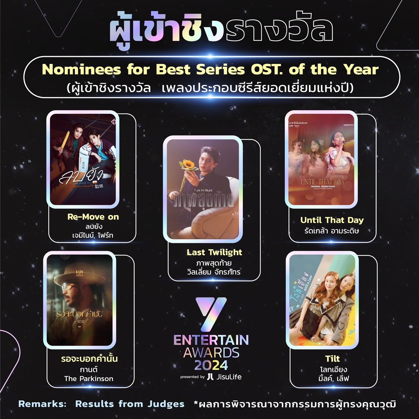 รางวัลBest Series OST. of the Year (เพลงประกอบซีรีส์ยอดเยี่ยมแห่งปี) ได้แก่ เพลง Re-Move on ลบยัง เจมีไนน์-โฟร์ท, เพลง Last Twilight ภาพสุดท้าย วิลเลี่ยม จักรภัทร, เพลง Until That Day รัดเกล้า อามระดิษ, เพลง รอจะบอกคำนั้น กานต์-The Parkinson, เพลง Tilt โลกเอียง มิ้ลค์-เลิฟ