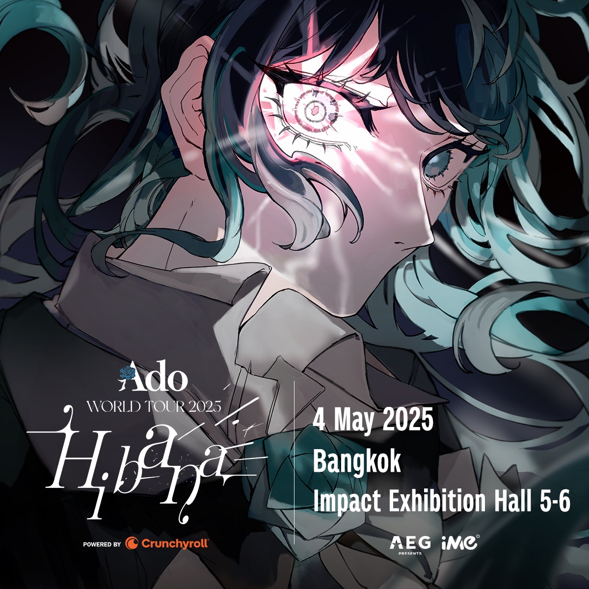 คอนเสิร์ต Ado WORLD TOUR 2025 “Hibana” Powered by Crunchyroll in BANGKOK จัดโดย AEG Presents Asia และ iMe Thailand จะจัดขึ้นในวันอาทิตย์ที่ 4 พฤษภาคม 2568 ที่ อิมแพ็ค เอ็กซิบิชั่น ฮอลล์ 5-6 บัตรราคาเริ่มต้น 3,000 บาท ซื้อบัตรได้ที่ Thaiticketmajor