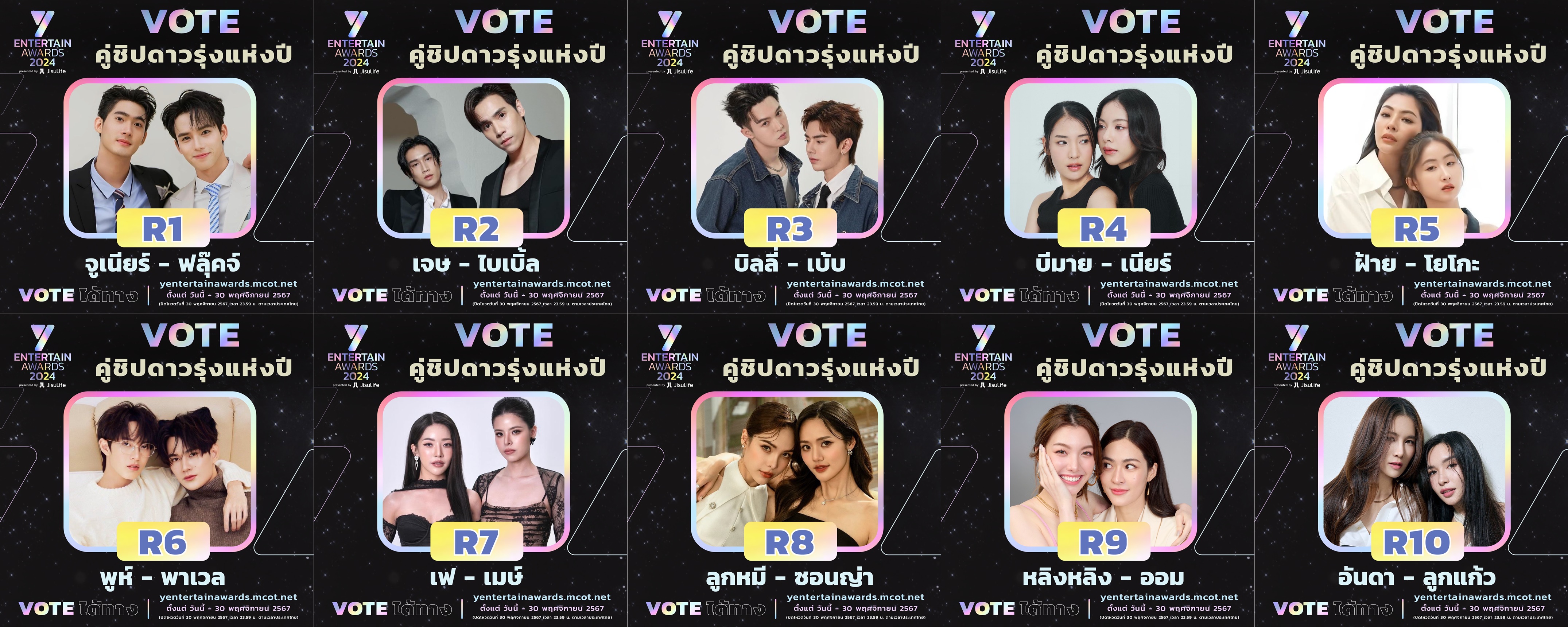 บริษัท อสมท จำกัด (มหาชน) ร่วมกับ บริษัท โซนิกซ์ ยูธ จำกัด โดย ก้อง-ปิยะ เศวตพิกุล จัดงานประกาศรางวัล “Y Entertain Awards 2024 presented by JisuLife” พร้อมผลักดันบันเทิง Y สู่ระดับสากล โดยพร้อมเปิดโผ เปิดโหวต ผู้เข้ารอบรางวัล “Y Entertain Awards 2024 presented by JisuLife” สาขารางวัล Rising Star Couple of the Year (คู่ชิปดาวรุ่งแห่งปี)
