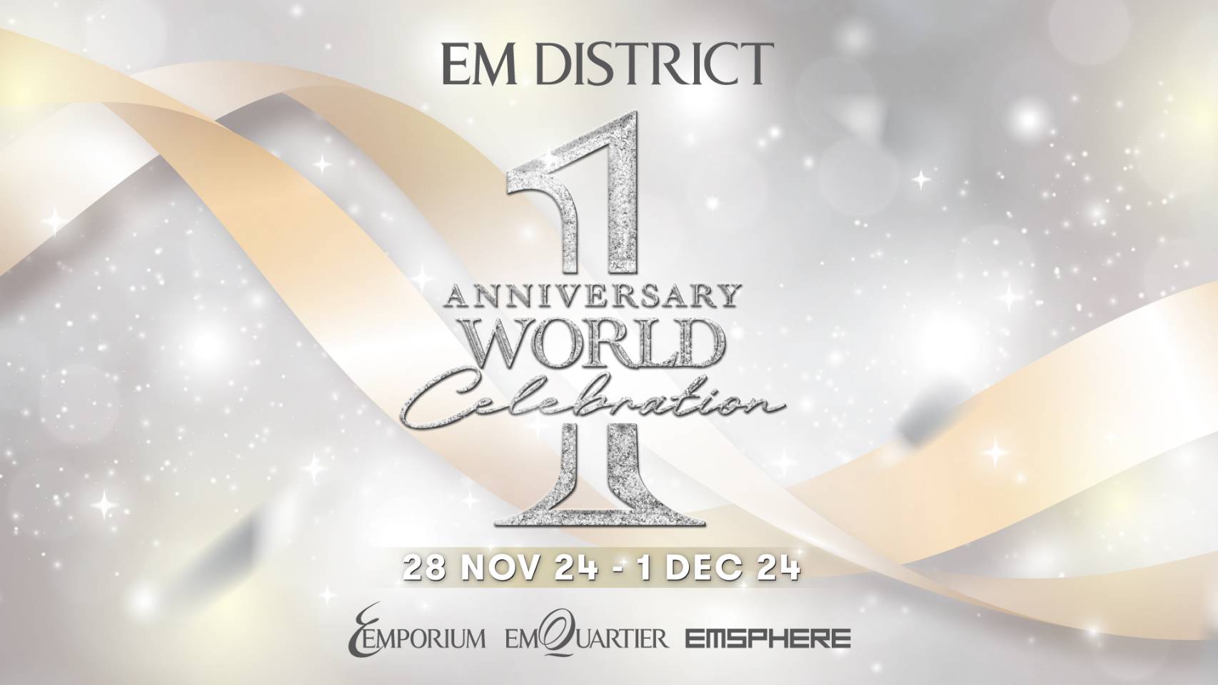 ร่วมฉลองครบรอบ 1 ปี เอ็ม ดิสทริค กับปรากฏการณ์ความสุขสุดยิ่งใหญ่ ตลอดเดือนพฤศจิกายน – ธันวาคม 2567 กับงาน “EM DISTRICT 1st Anniversary World Celebration” ได้ที่ศูนย์การค้าเอ็มโพเรียม เอ็มควอเทียร์ และเอ็มสเฟียร์