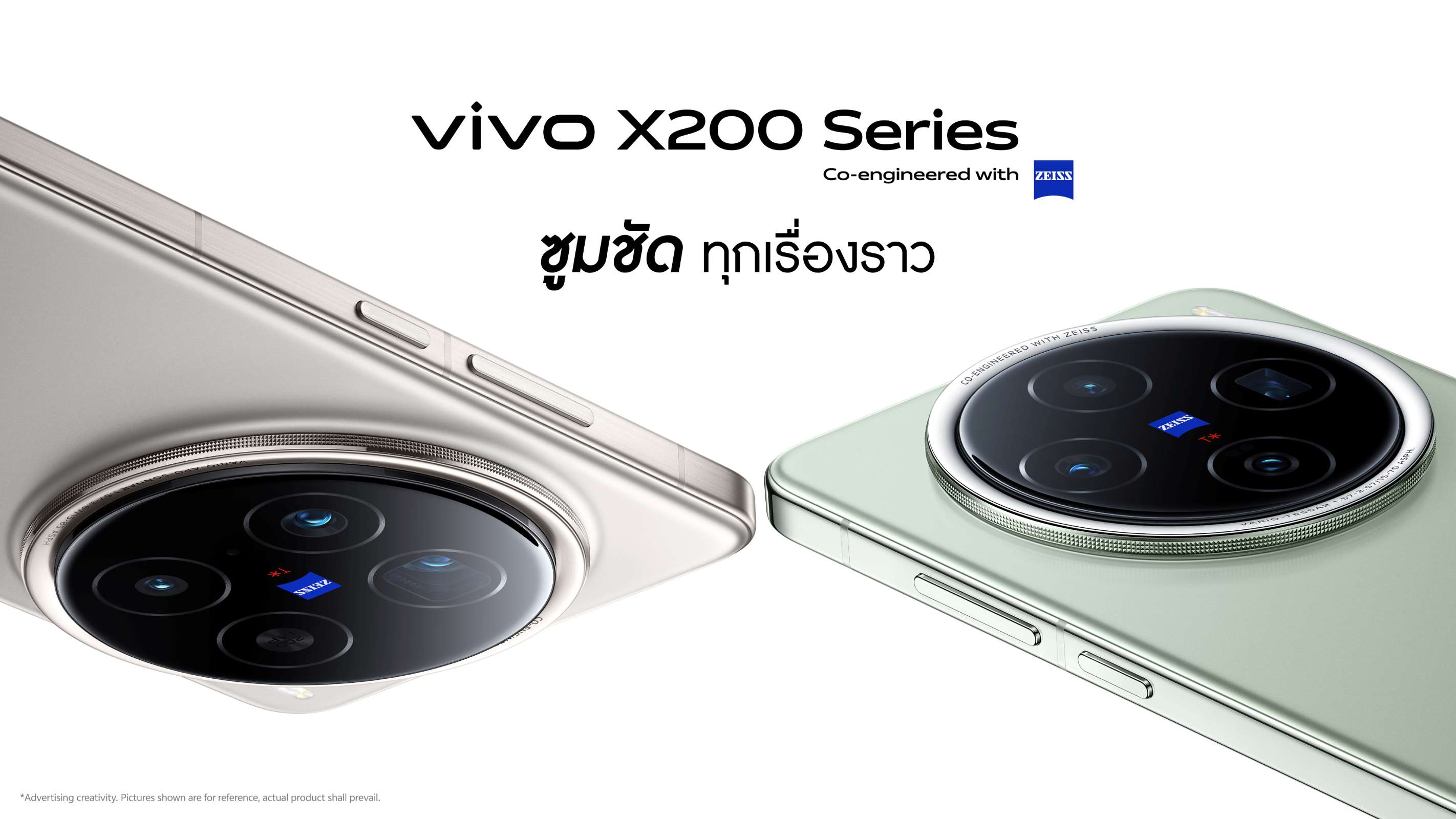 vivo X200 Series สมาร์ตโฟนรุ่นใหม่ล่าสุดจากตระกูล X Series เปิดตัวอย่างเป็นทางการในประเทศไทยภายใต้แนวคิด “ซูมชัด ทุกเรื่องราว” หรือ “ZEISS Image, Go Far” ยกระดับประสบการณ์ใหม่แห่งการซูม โดดเด่นทุกคอนเทนต์เหมือนไปยืนเกาะขอบเวที กับกล้องเทเลโฟโต้ความละเอียดสูงถึง 200MP ครั้งแรกในวงการสมาร์ตโฟนในรุ่น X200 Pro ซูมถ่ายภาพคอนเสิร์ตได้ไกลสูงสุด 50x แบบไม่เสียรายละเอียดภาพ พร้อมสัมผัสประสบการณ์ High-Quality Imaging ให้ผู้ใช้งานถ่ายภาพคอนเสิร์ต เทศกาลดนตรีที่ชื่นชอบด้วยโหมด Telephoto Super Stage ที่นำเทคโนโลยี AI เข้ามาช่วยจับการเคลื่อนไหวบนเวทีได้อย่างแม่นยำให้ภาพที่คมชัดคุณภาพสูง ภาพสวยเคลียร์ใสด้วยเทคโนโลยีการเคลือบเลนส์แบบ ZEISS T* Coating ลดแสงสะท้อน ไม่ต้องกังวลเรื่องแสงโกสต์ที่ติดเข้ามาในภาพ
