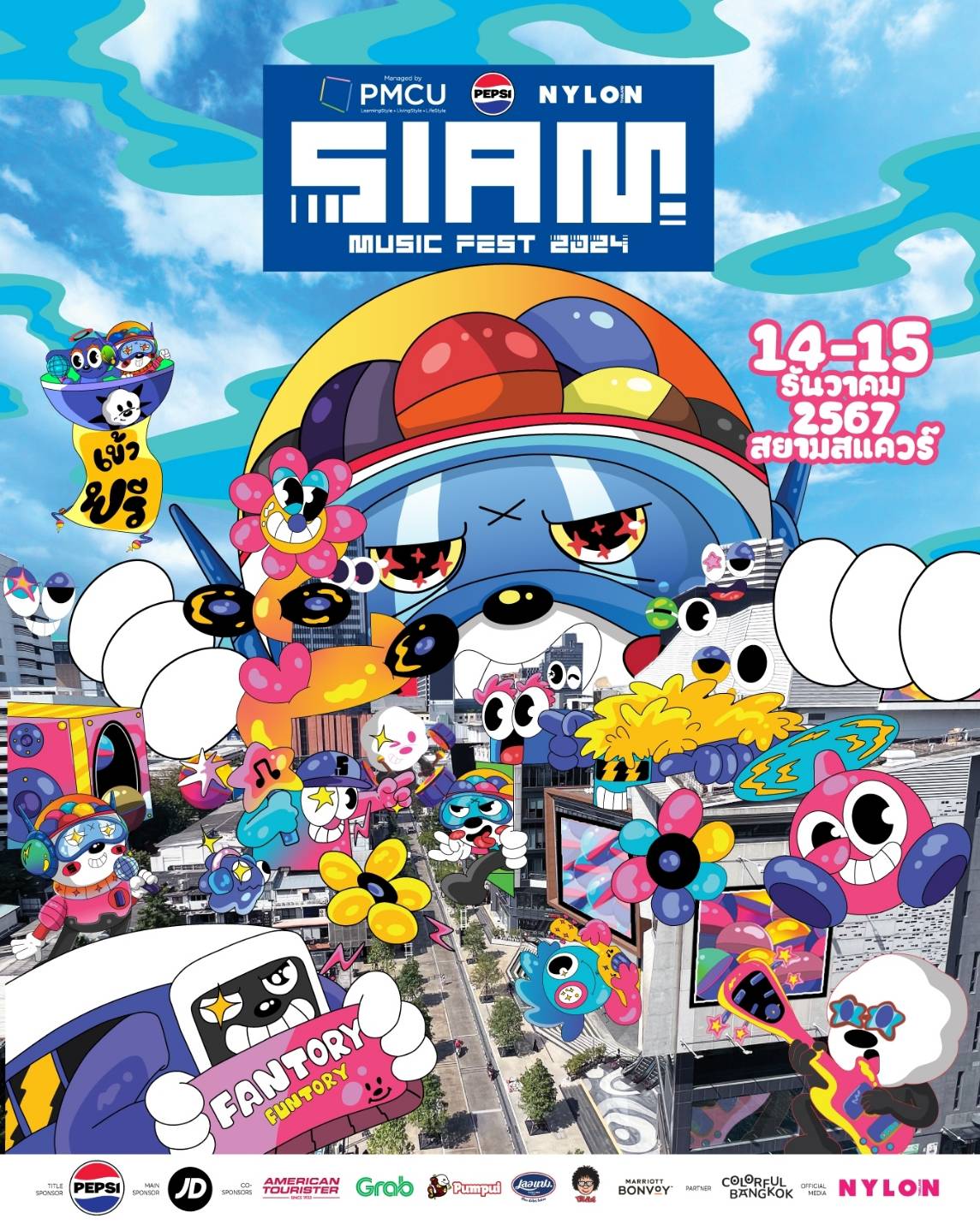 PMCU, Pepsi, NYLON Thailand present ‘Siam Music Fest 2024’ ซึ่งเป็นการจัดครั้งที่ 5 ครั้งนี้แรนด้อมความมันส์กับกว่า 100 ศิลปิน หลากหลายแนว เช่น