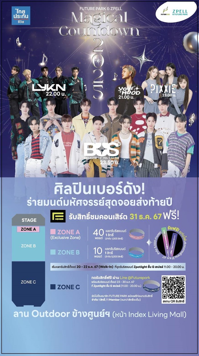 • กดรับสิทธิ์ฟรีผ่าน Line @Futurepark และรับริชแบนด์ได้ตั้งแต่ 23 – 30 ธ.ค. 67 ที่ Zpotlight ชั้น G สเปลล์ (11.00 – 20.00 น.)