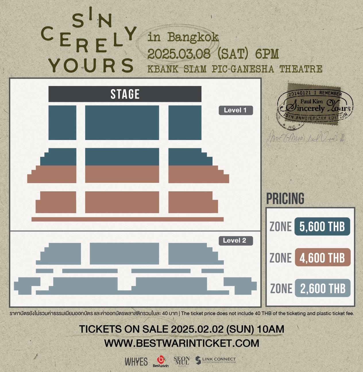 อยากปลดล็อคหูเคลือบทอง เตรียมตัวให้พร้อม กับงาน “2025 Paul Kim Concert <Sincerely yours> in Bangkok” ในวันเสาร์ 8 มีนาคม 2568 โรงละครสยามแบงก์พิฆเนศ และเตรียมวอร์มนิ้วให้พร้อม เปิดจำหน่ายบัตรวันอาทิตย์ ที่ 2 กุมภาพันธ์ 2568 เวลา 10:00 น. เป็นต้นไป ทาง https://bestwarinticket.com/ บัตรราคา 5,600 บาท / 4,600 บาท / 2,600 บาท พร้อม Benefits ฉ่ำๆ และที่สำคัญงานนี้มีเซอร์ไพร์เกสต์สุดพิเศษที่คุณอาจคาดไม่ถึงอย่างแน่นอน
