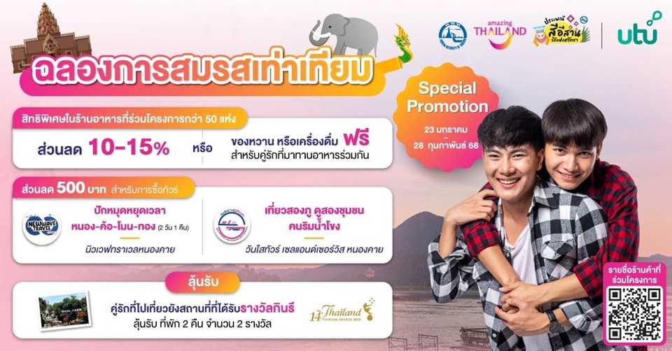 และข้อเสนอพิเศษสำหรับคู่รัก LGBTQ+ ที่เดินทางท่องเที่ยวไปยังภาคอีสาน ได้แก่ มอบส่วนลดสูงสุด 10 -