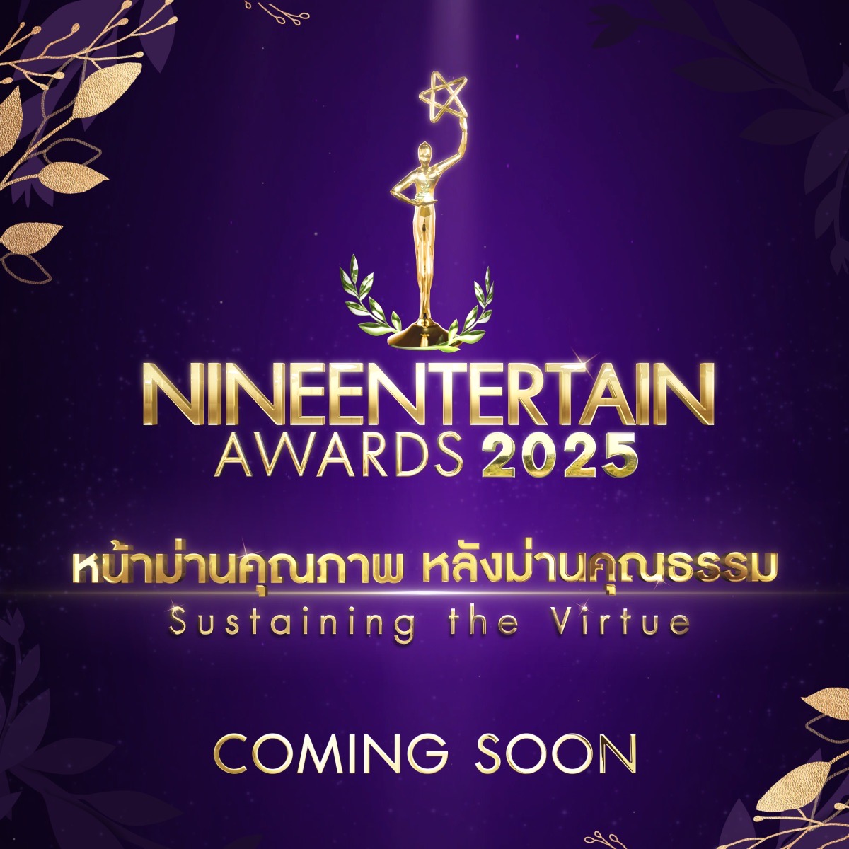 เตรียมพบกับงานประกาศรางวัล “NINEENTTERTAIN AWARDS 2025” (ไนน์เอ็นเตอร์เทนอวอร์ด 2025) วันพฤหัสบดีที่ 22 พ.ค. นี้ ณ หอประชุมใหญ่ ศูนย์วัฒนธรรมแห่งประเทศไทย สามารถติดตามรายละเอียดเพิ่มเติมได้ใน รายการไนน์เอ็นเตอร์เทน ทาง ช่อง 9 กด 30 ,www.nineentertain.tv, www.facebook.com/9entertain และ YouTube: Nine Entertain Official