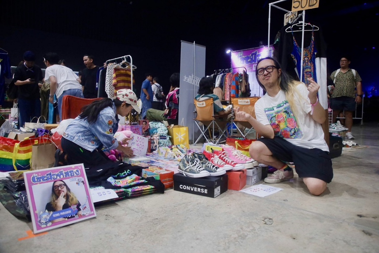 เพิ่มเติมคือเหล่าศิลปิน ขุดกรุขนของรักจากบ้านมาแน่นฮอลล์ ไม่ว่าจะเป็นเสื้อ ซีดี กระเป๋า รองเท้า เครื่องประดับ ตุ๊กตา ฯลฯ สายร็อก ‘ป๊อด ธนชัย’ (โมเดิร์นด็อก) เปิดบูทในนาม POD GOODS ครั้งแรกก็ขายดีแบบฟีลกู๊ดเกลี้ยงแผง สายโจ๊ะ ‘สิงโต นำโชค’ ก็จัดเต็ม ทุกชุด ทุกไอเทมที่ใส่ขึ้นเวทีมาวางขายแบบลุคติดแกลมแต่ราคาติดดิน ขาประจำอย่าง ‘สอง พาราด็อกซ์’ ‘สครับบ’ ‘โพลีแคท’ ก็จัดคอลเลกชั่นที่แฟนๆ เห็นแล้วต้องรีบคว้า หรือเหล่าศิลปินรุ่นใหม่อย่าง ซีเรียสเบค่อน , ปันปัน ยีย์ยีย์ , นายโอเคมั๊ย? สาวๆ ไอดอล เกิร์ลกรุ๊ป อาทิ แจนจัง เจนนิษฐ์ ฟอร์จูน รินะ ก็มีแฟนๆ มาอุดหนุนแน่นทั้งวัน