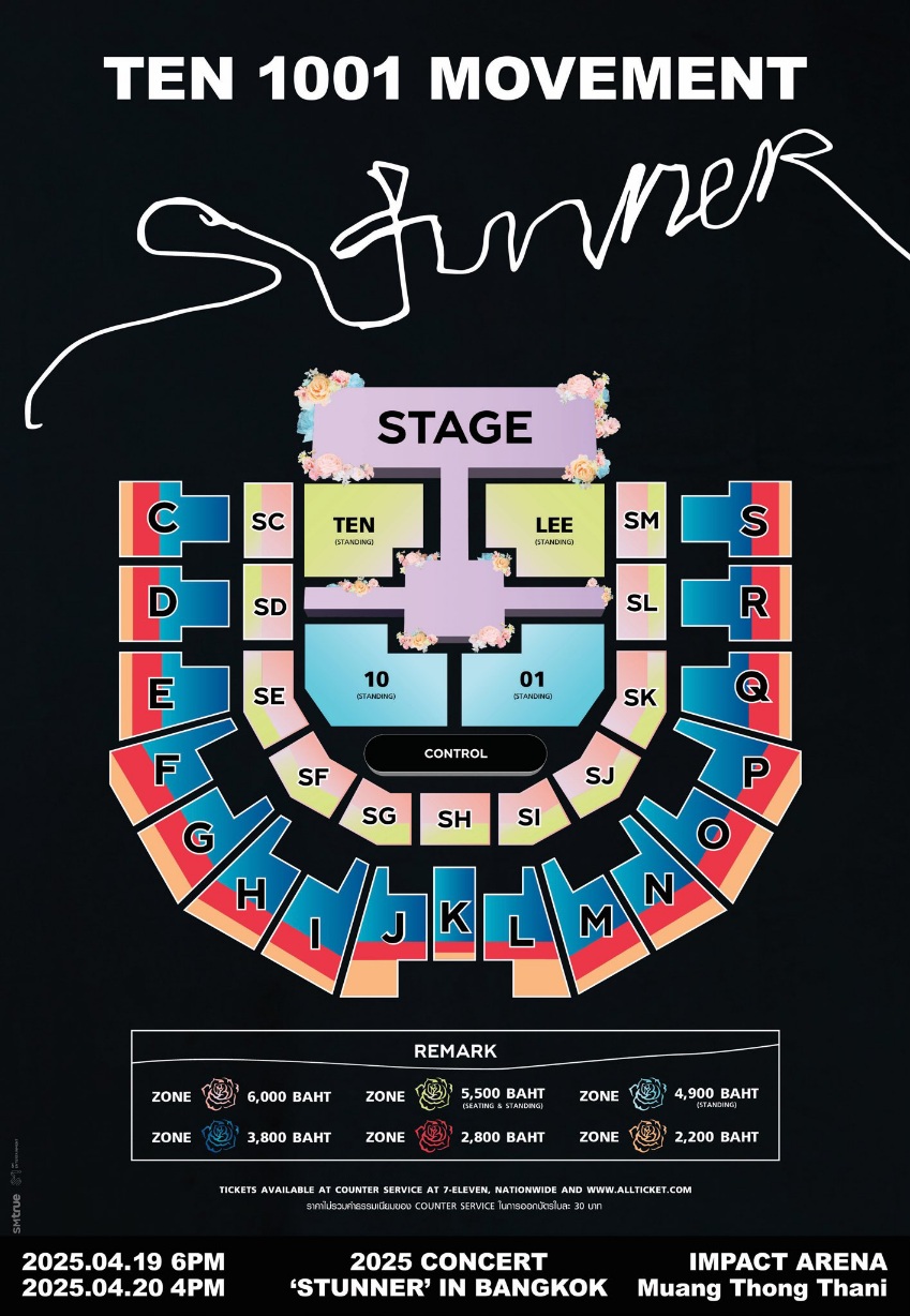 ทั้งนี้ หลังจากปล่อยอัลบั้มใหม่ TEN (เตนล์) เตรียมเดินหน้าจัดทัวร์คอนเสิร์ตเดี่ยวครั้งแรก เริ่มต้นที่กรุงโซล ประเทศเกาหลีใต้ ในวันที่ 12-13 เมษายนนี้ ตามด้วยบ้านเกิดที่ประเทศไทยเป็นที่แรก, เซี่ยงไฮ้, โอซาก้า, ฟุกุโอกะ, โตเกียว และนาโกย่า สำหรับคอนเสิร์ตที่ประเทศไทย ‘2025 TEN CONCERT 1001 MOVEMENT ‘STUNNER’ IN BANGKOK’ จะจัดขึ้นในวันที่ 19-20 เมษายนนี้ ณ อิมแพ็ค อารีน่า โดยตอนนี้บัตรยังมีจำหน่ายทาง 7-Eleven ทุกสาขาทั่วประเทศ และเว็บไซต์ www.allticket.com/event/2025TENCONCERT_IN_BANGKOK พร้อมสิทธิพิเศษสำหรับผู้ซื้อบัตร ติดตามข่าวสารและรายละเอียดเพิ่มเติมของคอนเสิร์ตได้ทางบัญชีโซเชียลมีเดียต่าง ๆ ของ SM True : เฟซบุ๊ก facebook.com/smtruethailand, อินสตาแกรม instagram.com/smtruethailand, เอ็กซ์ x.com/SMTrueThailand และติ๊กต๊อก tiktok.com/@smtruethailand สอบถามข้อมูลเพิ่มเติมเกี่ยวกับการซื้อบัตรได้ทาง Counter Service : อีเมล support@allticket.com และไลน์ออฟฟิเชียล @counterservice