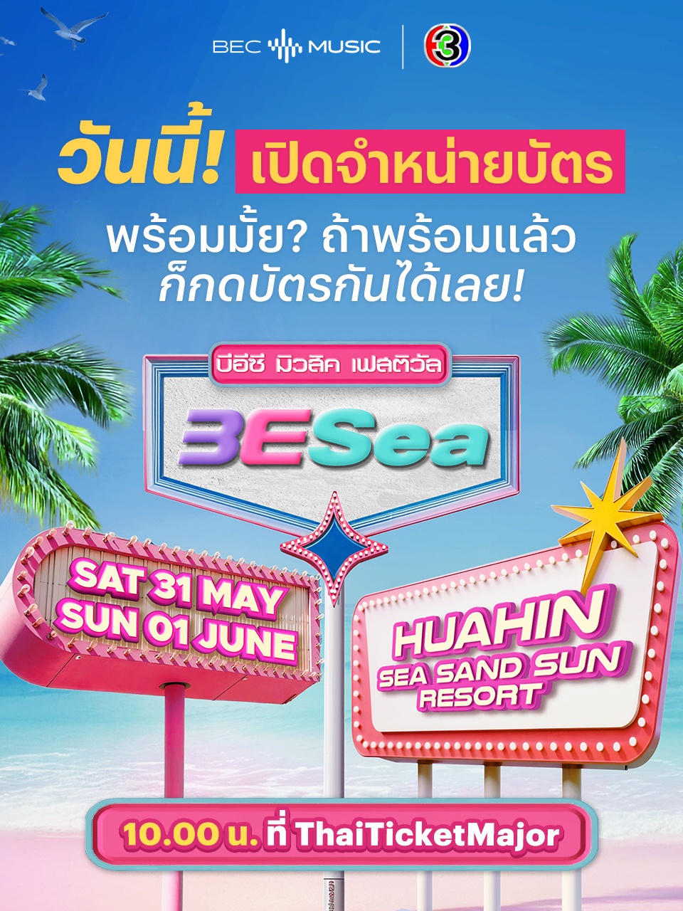 ใครที่กดบัตรได้แล้วเตรียมตั วไปสัมผัสความยิ่งใหญ่พร้อมกัน กับเทศกาลดนตรีครั้งแรกของช่อง 3 “BESea Music Festival 2025” รับรองว่าทุกโมเมนต์อั ดแน่นไปด้วยความสุข สนุกสุดมันส์แบบไม่มีวันลืม