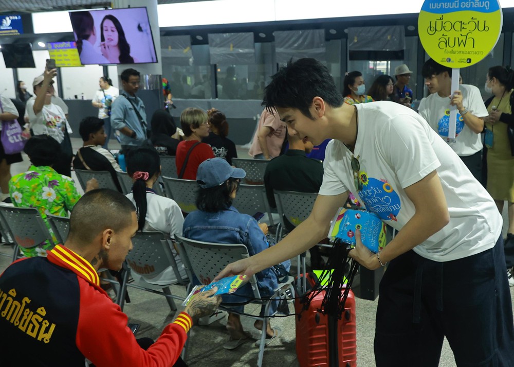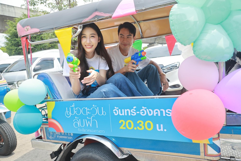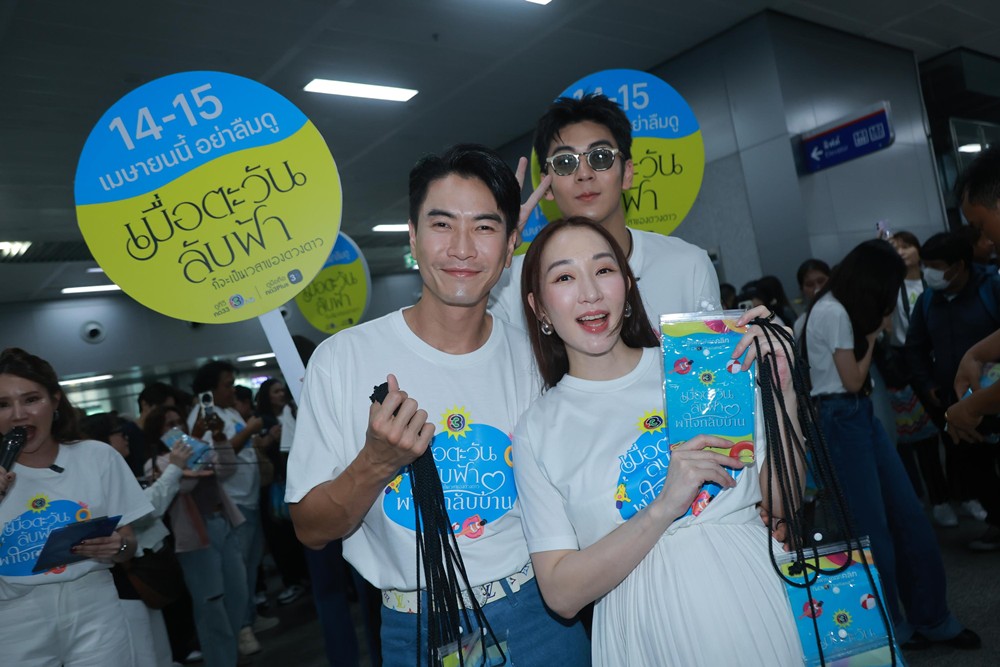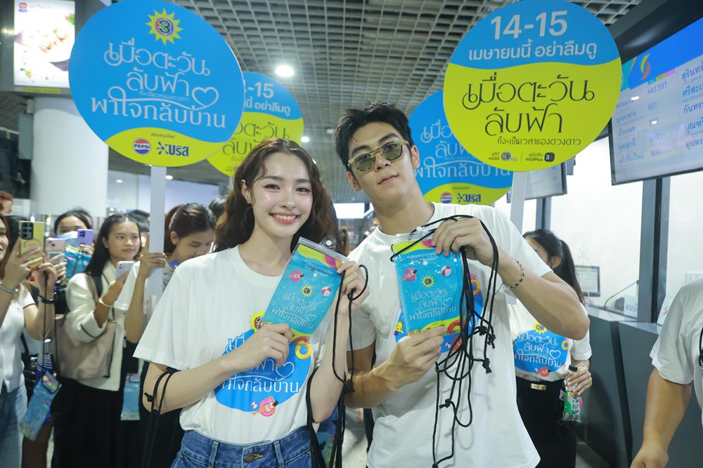 ทำเอาบรรยากาศคึกคักกันสุด ๆ เมื่อ ผู้จัดฯ “คุณตู่ ปิยวดี มาลีนนท์” นำทีมนักแสดงจากละคร เรื่อง “เมื่อตะวันลับฟ้าก็จะเป็ นเวลาของดวงดาว” ทางช่อง 3 อย่าง ริว วชิรวิชญ์, มิ้นท์ รัญชน์รวี, แคนดี้ สุภาภัสสร์ และ มาวิน ทวีผล ส่งความสุขช่วงเทศกาลสงกรานต์กั บกิจกรรม “เมื่อตะวันลับฟ้า พาใจกลับบ้าน” ที่เปิดตัวมาพร้อมกับกลองยาว นั่งรถตุ๊กตุ๊กไปมอบความสุ ขแจกซองกันน้ำที่ทำขึ้นเฉพาะให้ กับทุกคนที่เดินทางกลับบ้านไว้ ให้ได้ใส่เล่นน้ำสงกรานต์กันอย่ างชุ่มฉ่ำทั่วไทย ณ สถานีขนส่งผู้โดยสารกรุงเทพฯ (จตุจักร) และสถานีกลางกรุงเทพอภิวัฒน์ เมื่อวันที่ 11 เมษายน ที่ผ่านมา