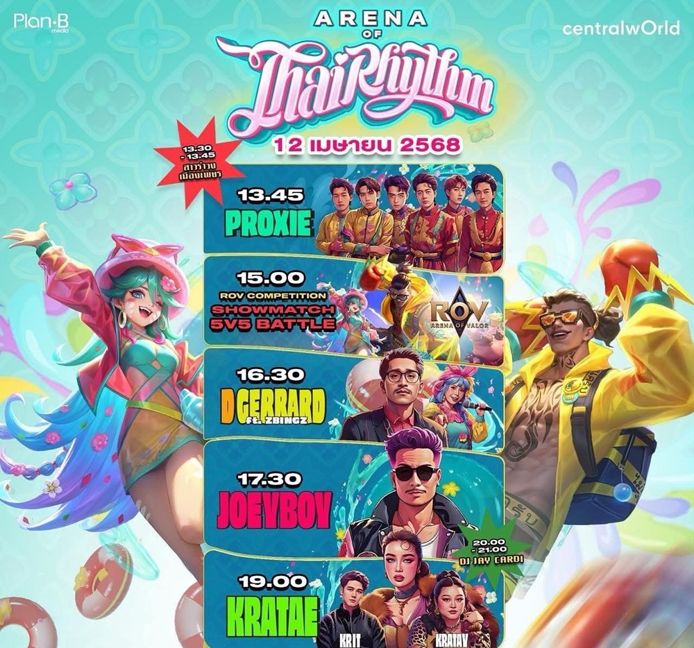 พร้อมมั้ย 12 เม.ย. นี้! เซ็นทรัลเวิลด์ ผนึก ททท., Plan B และ RoV จัดใหญ่ “Thai Rhythm Songkran Festival 2025” มันส์จัดเต็มกลางกรุง สายเกม-สายโจ๊ะห้ามพลาด