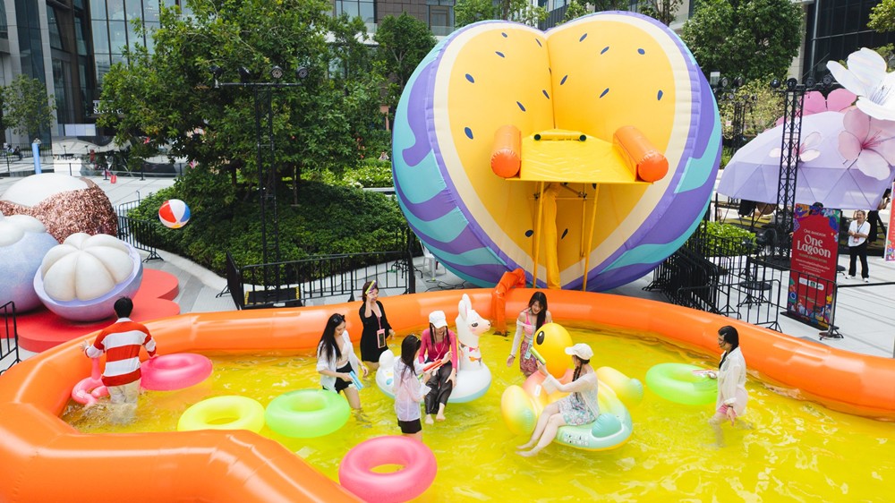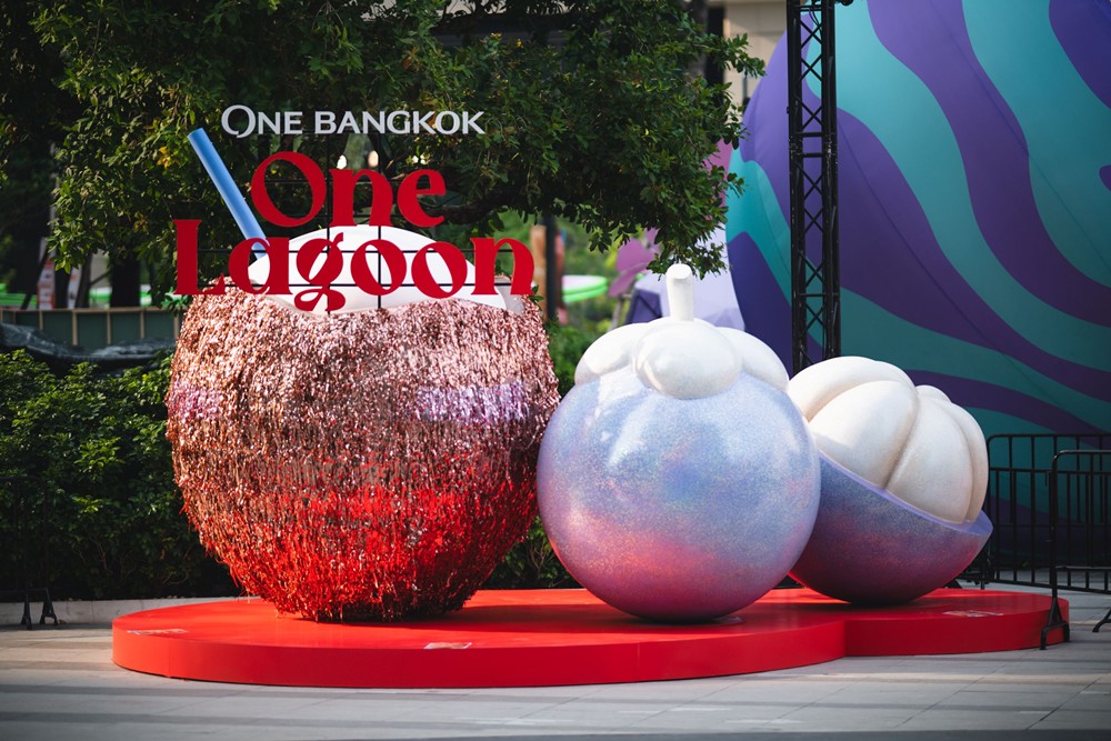 FLOW PARADISE: One Bangkok Park transforms into a tropical paradise inspired by the flowing waters of the lagoon. Get ready to unleash your inner party animal with electrifying concerts from renowned artists and DJs, complete with cutting-edge sound and lighting on a spectacular stage. Sip on refreshing cocktails at the Tropical Bar amidst a lush tropical fruit garden, and revel in the playful charm of vibrant fruit-shaped art installations.