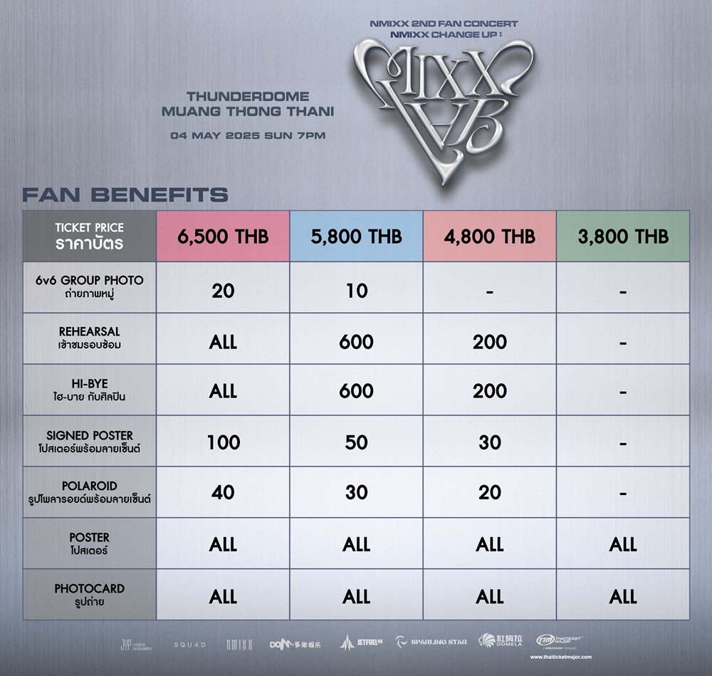 จัดให้แบบเต็มอิ่ม NMIXX เกิร์ลกรุ๊ปแถวหน้าที่น่าจั บตามองในขณะนี้ และ JetFuel ผู้จัดสุดปัง พร้อมมอบสิทธิพิเศษให้กับแฟน ๆ ชาวไทยได้ใกล้ชิดสาว ๆ มากขึ้น ไม่ว่าจะเป็นสิทธิ Rehearsal / Hi-Bye / Singed Poster / Polaroid เดิมที่มีอยู่แล้ว แต่งานนี้ขอเพิ่มจำนวนมากขึ้ นกว่าเดิม และที่ปังไม่ไหว และจัดกันให้อย่างเซอร์ไพรส์ นั้นก็คือ ผู้ที่ซื้อบัตร 6,500 และ 5,800 บาท จะได้ร่วมลุ้นเป็น 30 คนที่ได้ถ่ายรูปกับสาวๆ ทั้ง 6 แบบ EXCLUSIVE !!!