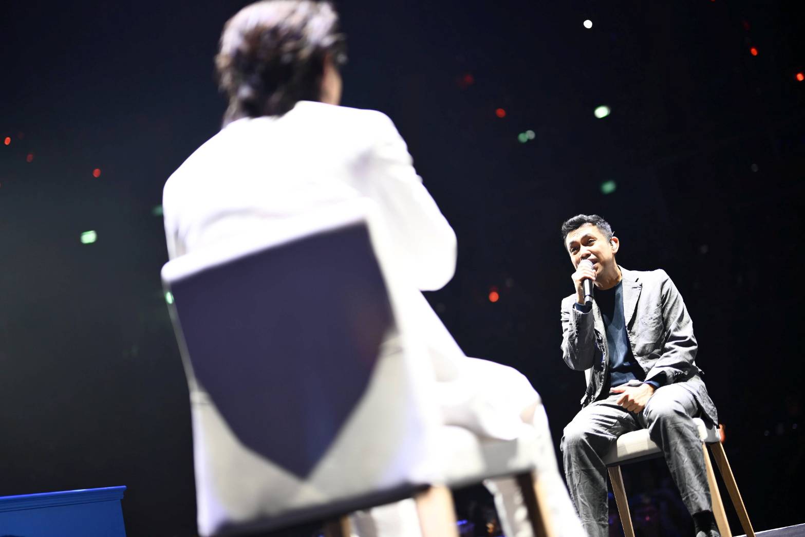 ความสุขเดินทางต่อเนื่องเมื่อ บอย-ป๊อด ร้องเพลงรักสุดโรแมนติก “รักคุณเข้าแล้ว” และ “ข่าวของเธอ” ที่เพิ่มความเศร้ากินใจ ด้วยพาร์ทโซโล่ทรัมเป็ตแบบบาดลึกถึงความทรงจำ ก่อนจะเบรกอารมณ์เศร้า มาปลุกพลัง ส่งต่อกำลังใจในเพลง “ชัยชนะ” ที่ชวน “ดร.พลัง โลกศิลป์” หรือรุ่ยเจี๋ย จากซีรีส์ดังเรื่องสงครามส่งด่วน มาโชว์น้ำเสียงทรงพลัง และร้องเพลงร่วมกันในสไตล์โอเปร่า สร้างความตื่นตาให้คนทั้งฮอลล์ พร้อมส่งต่อเวทีไปสู่ช่วงที่เรียกว่าฟินสุดๆ เพราะแค่เดินออกมาไฟฟอลโล่ส่องเวทีออร่าสว่างเรียกเสียงกรี๊ดก็ดังกระหึ่มที่สุด กับศิลปินรับเชิญคนถัดมา “บิวกิ้น พุฒิพงศ์” ศิลปินดาวรุ่งที่เพิ่งมีผลงานร่วมกันเมื่อไม่นานนี้ ซึ่งวันนี้มาร่วมร้องเพลง “เรื่องจริง” ก่อนจะขยับมาสู่เวทีกลาง สร้างโมเมนต์เศร้ากระแทกใจ ชวนน้ำตาไหลไปพร้อมกัน กับเพลงล่าสุด “I’m OK, not OK” โชว์ครั้งแรกที่ร้องด้วยกันระหว่าง “ป๊อด-บิวกิ้น” บนเวทีคอนเสิร์ตที่สร้างกระแสไวรัลไปทั่วโลกโซเชียล