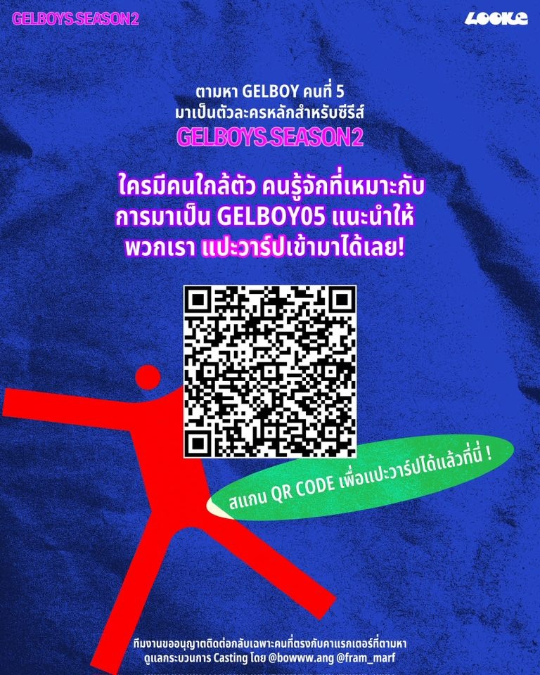 ล่าสุด ค่าย LOOKE (ลู้คกี้) ไม่ปล่อยให้แฟน ๆ รอนาน ประกาศคัมแบ็กครั้งใหญ่กับโปรเจกต์ภาคต่อ “GELBOYS SEASON 2” พร้อมเปิดรับสมัครนักแสดงหน้าใหม่ เพื่อเฟ้นหา “GELBOYS คนที่ 5” ที่จะก้าวขึ้นมาเป็นหนึ่งในนักแสดงหลักของเรื่อง! เพื่อเติมเต็มความสัมพันธ์ในจักรวาล GELBOYS เคียงข้างกับ 4 หนุ่ม นิว ชยภัค ตันประยูร, ไป๊ป มนธภูมิ สุมนวรางกูร, พีเจ มหิดล พิบูลสงคราม และเลออน บรอคโค่