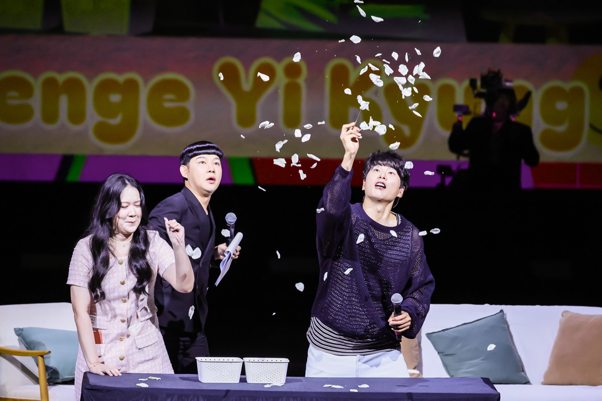 เจ้าของวลีสุดไวรัล ‘เควนชันนา~ เตงเตงเตงเตงเตง’ ปรากฏตัวบนเวทีพร้อมเพลง “With You Love” พร้อมกล่าวทักทายแฟนๆ อย่างเป็นกันเอง ก่อนจะพาทุกคนเข้าสู่ช่ วงเวลาแห่งความสนุกที่เต็มไปด้ วยรอยยิ้มและเสียงหัวเราะ ทันทีที่เริ่มพูดคุยอีอีคยองได้ เปิดใจถึงความรู้สึกที่ได้กลั บมาเจอแฟนๆ ชาวไทยอีกครั้ง พร้อมพูดถึงผลงานที่ทำให้เขาเป็ นที่รักของผู้ชมทั่วเอเชีย จากนั้นเข้าสู่กิจกรรมเล่นเกมสุ ดใกล้ชิด แฟนคลับผู้โชคดีที่ได้ขึ้นเวที มารับความฟินแบบเรียลไทม์ อีอีคยองเซอร์วิสแบบไม่มีกั๊ก แจกสะบัด! โดยเฉพาะของรางวัลที่ไม่ใช่แค่ สิ่งที่เตรียมมา แต่แถมให้! อุ้มแฟนคลับถ่ายรูปจนหวีดเสี ยงแทบแหบกันทั้งงาน