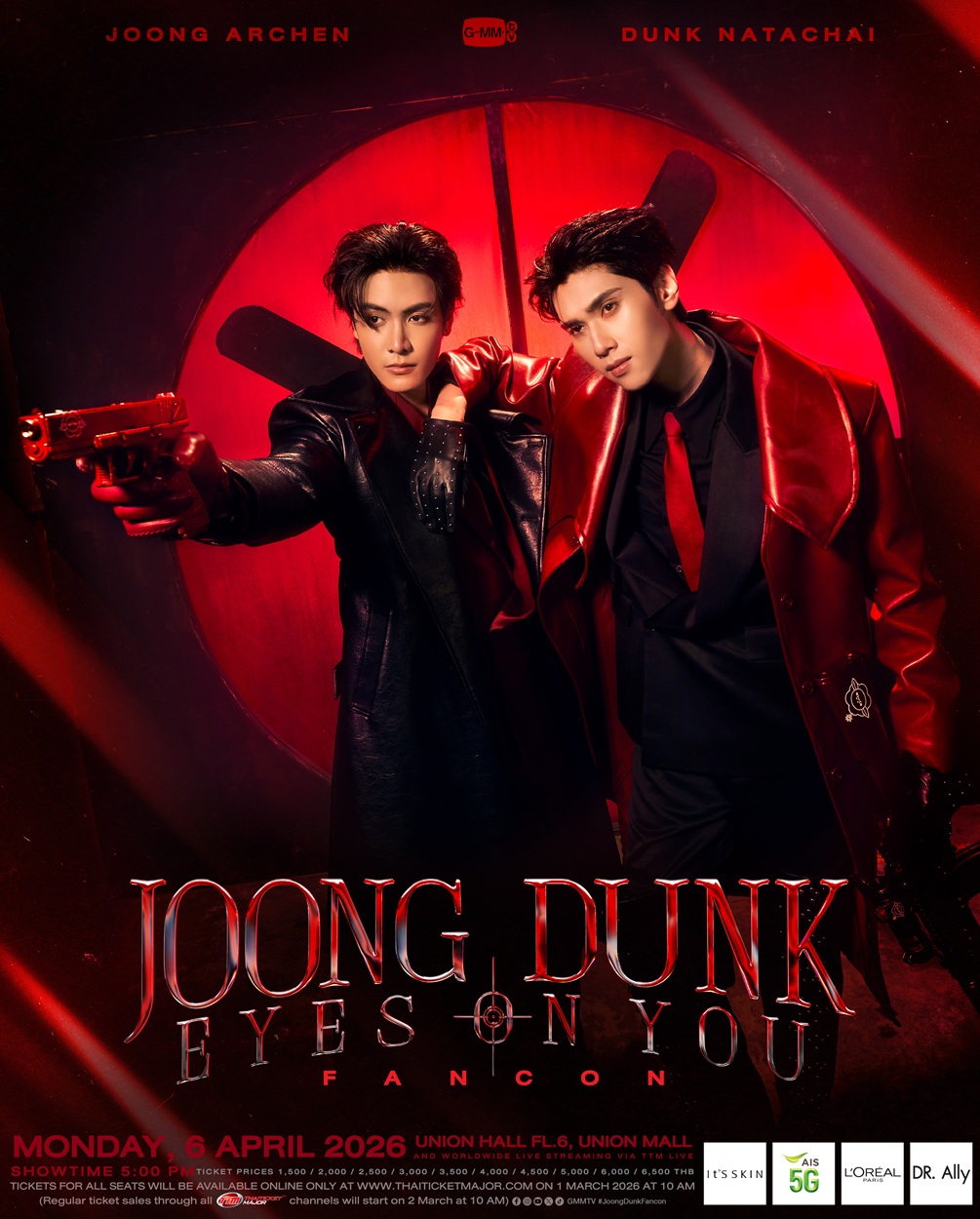เรียกได้ว่าทำเอาแฟนๆ ใจฟูจนล้น หลังจากที่ “จุง อาเชน ไอย์ดึน” และ “ดัง ณัฎฐ์ฐชัย บุญประเสริฐ” 2 นักแสดงหนุ่มฮอตโชว์ฝีมือการแสดงและแจกความเท่จนครองใจผู้ชม ในซีรีส์ “Dare You To Death ไขคดีเป็น เห็นคดีตาย” งานนี้ “GMMTV” คอนเทนต์โพรไวเดอร์ชั้นนำของเมืองไทย ก็พร้อมแล้วที่จะเปลี่ยนโหมดจากนักสืบสุดเท่ของทั้งคู่มาเป็นคู่หูสุดคิ้วท์ที่การันตีความใกล้ชิดแบบเต็มอิ่มจุใจ กับงาน “JOONG DUNK EYES ON YOU FANCON” เตรียมพบกับเซอร์ไพรส์โชว์ที่ “จุง-ดัง” ซุ่มซ้อมมาอย่างหนักเพื่อเป็นการขอบคุณทุกแรงสนับสนุน ทั้งร้องและเต้นในลุคที่แฟนๆ ไม่เคยเห็น พร้อมโมเมนต์ตกแฟนๆ เข้าด้อมแบบเต็มเวที ที่จะทำให้แฟนๆ ได้ฟินกันถ้วนหน้า ในวันจันทร์ที่ 6 เมษายน 2569 เวลา 17.00 น. ณ ยูเนี่ยน ฮอลล์ ชั้น F6 ศูนย์การค้ายูเนี่ยน มอลล์ และแฟนๆ ทั่วโลกยังสามารถร่วมชมโมเมนต์สุดฟินได้แบบเรียลไทม์ ผ่านการรับชมแบบ Live Streaming ทาง “TTM LIVE” ที่สามารถรองรับผู้ชมได้ครอบคลุมทั่วโลก โดยแฟนๆ เตรียมล็อคคิวกดซื้อบัตรกันได้เลย