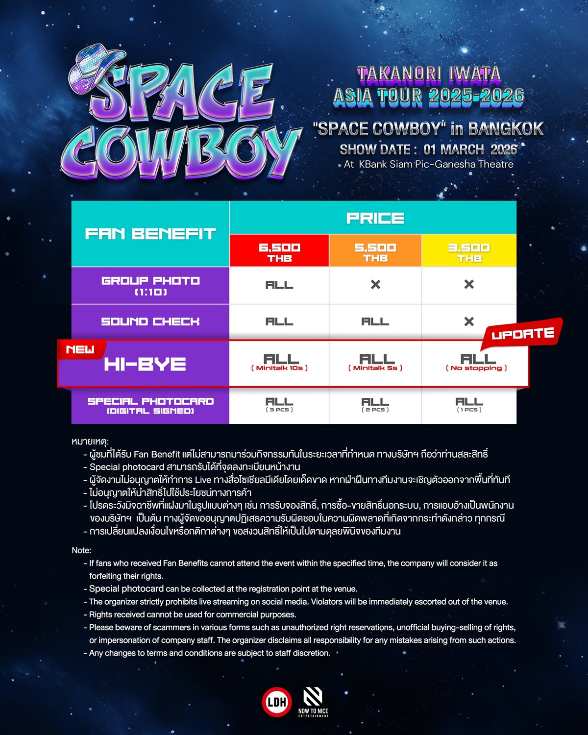 เตรียมเสียงกรี๊ดให้พร้อม! เพราะผู้ชายที่ชื่อ Takanori Iwata (GAN) ไม่เคยทำให้แฟนชาวไทยผิดหวัง ล่าสุดอัปเกรดความพิเศษประกาศเพิ่ม Fan Benefits minitalk สำหรับคอนเสิร์ต TAKANORI IWATA ASIA TOUR 2025-2026 “SPACE COWBOY in BANGKOK” ในวันที่ 1 มีนาคม 2569 ณ โรงละครเคแบงก์สยามพิฆเนศ ชั้น 7 สยามสแควร์วัน
