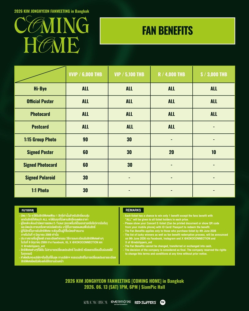 2026 KIM JONGHYEON FANMEETING [COMING HOME] IN BANGKOK 13 มิถุนายนนี้!