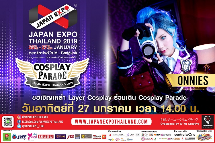 ไม่เพียงแค่นั้น!!! ในวันอาทิตย์ที่ 27 มกราคม 2562 เวลา 14.00 น ขอเชิญชวนเหล่า Layer Cosplay  ร่วมกิจกรรม Cosplay Parade ที่รวมเหล่าเลเยอร์ไว้ระดับแถวหน้าของประเทศไทย!!! นำทีมโดย 4 คอสเพลย์เยอร์ไอดอลประเทศไทย Thames(เทมส์), Onnies(ออนิส), JasperZ(แจสเปอร์ซี) และ Artto(อาร์โต) ที่เหล่าเลเยอร์คอสเพลย์ต้องห้ามพลาดทีเดียวเชียว….!!!